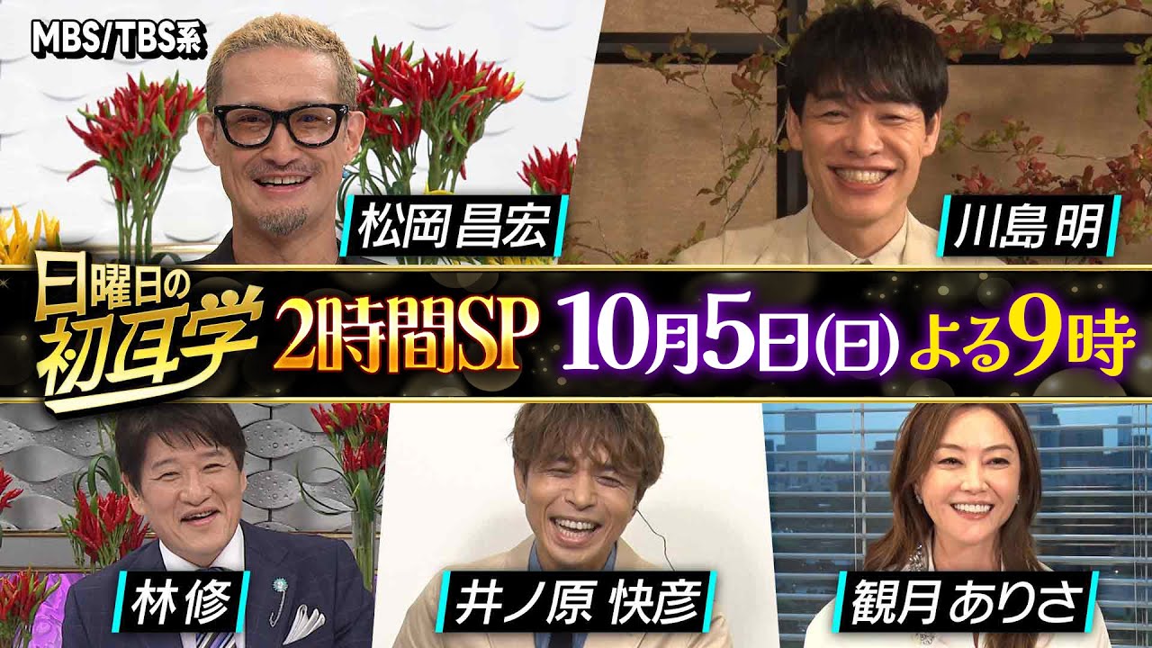 林修×松岡昌宏&川島明2本立て!井ノ原快彦 観月ありさも参戦 2時間SP『日曜日の初耳学』10/5(日)【TBS】