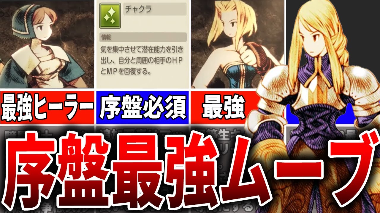 今回はファイナルファンタジー タクティクスイバリースクロニクルズの 序盤最強ムーブを徹底解説していきます。 この動画を最後まで見れば効率よくジョブ を育成して序盤から中盤以降まで安定して 進められる方法が分かります。初めて FFTをプレイする方も今回はステーだ けどリマスターの内容は把握しておきたい 人も最後まで見てください。この動画で 解説している内容ですが、序盤に最優先で 習得したいアビリティは取得JPアップ、 投石、メンテナンス、チャクラ、サンダー 、テレポ、ケアル、レイズ、各手アイテム です。これらを早めに抑えておくことで 戦闘の安定性が大きく変わります。そして ジョブチェンジのルート。物理キャラは 文句やシーフへ進み、魔法キャラは 黒魔導士、時魔導士、白魔導士、音名字と いったルートを組み合わせることで序盤 から終盤まで強力なパーティーを編成でき ます。ルートを分散させてバランスを取る ことが安定した攻略の鍵です。つまり序盤 の育成では効率よくJPを稼ぎ、支援や 回復の手段を確保し、中盤以降に必要な アビリティを計画的に習得していくことが 大切です。皆さんはどのジョブから育てて 進めていきますか?是非コメントで教えて ください。そして今回の動画ですが、私の Xのフォロワーさんのブログの内容を一部 引用させていただいています。ママガと いうゲームの攻略情報やクリアレビューを 投稿されている面白いブログなので是非 こちらも概要欄から確認してください。 FFTの育成で最初に意識するべきは キャラクターごとのブレイブとフェイス です。ブレイブはユニットの勇気を数値化 したものとありますが具体的に言うと物理 系ジョブにおいてリアクションアビリティ の発動率に直結します。リアクション アビリティとはカウンターやオート ポーションなどです。これらのアビリティ も高いブレイブがあってこそ進化を発揮し ます。リアクションアビリティは装備武器 ガードとミキルを覗いてそのキャラの ブレイブパーセで発動します。例えば ラムザはブレイブ値が72だからオート ポーションなどが72%で発動するという ことです。そしてフェイスはユニットの 進行を表しますとありますが、具体的には 魔法攻撃の威力に関係します。フェイスが 高いほど黒魔法や白魔法の成功率が安定し 、逆に低いといくら強力な魔法を覚えても 高い効果は望めません。物理ジョブを主に 育てるキャラクターは高ブレイブ低 フェイス。魔法ジョブを育てる キャラクターは低レイブ4フェイスが理想 です。序盤から数値を調整するのが 望ましいですが、後からでも修正は可能 ですので意識しておくと安心です。皆さん はブレイブやフェイスをどの段階で調節し ていますか?コメントで教えてください。 序盤の育成は見習い戦士とアイテム氏の 運用が重要です。どちらも最初から汎用 キャラのジョブとして登場しますし、 ラムザもチュートリアル後は見習い選手 からスタートします。見習い選手は取得 JPアップを最優先で覚えるのがおすめ です。これを取るだけでアビリティ 習得速度が格段に上がり育成効率が大きく 改善します。全てのキャラに覚えさせても いいと私は思ってますし、実際私は加入し たキャラ全員にまず取得JPアップを覚え させています。さらに投石も使いやすい です。低火力ながらも遠距離から安定して 攻撃でき戦闘を長引かせることで結果的に JP稼ぎの機械を増やすことができます。 FFTは1回の戦闘が長く普通に戦闘を こなしているとレベルアップに時間が かかります。そのためJP稼ぎやレベル アップは味方を殴る行為が基本です。 ナイトや文句で味方同士殴り合うと稀れに クリティカルが発生して事故が起きる可能 性があります。を覚えさせていれば 殴り合いじゃなくて石の投げ合いで序盤 からガンガンレベルが上がってJPも増え ます。徳JPを覚えさせて序盤の マンダリア平原で石の投げ合いをして ください。また余裕があればムーブプラス 1も習得しておくと探索や戦闘での 立ち回りがグッド楽になります。死戦争で もありましたがマスターではオートバトル があって選んだ敵を攻撃しろ。選んだ味方 を援護しろ。味方の回復を優先しろ。安全 な場所に逃げろの4つの自動コマンドが 選べます。アタッカーは選んだ敵を攻撃 しろを選んでアイテムや白魔導士は選んだ 味方を援護しろを選んでおくと他の作業を しながら勝手にレベルやJPお金稼ぎが できます。難易度の違いで経験値やJP 獲得量に違いがないので難易度カジュアル にしておくとレベリングが自動化できます 。次にアイテム。アイテムでは メンテナンスが序盤から終盤まで役立ち ます。敵の破壊アビリティを無効化できる ため貴重な装備を守ることが可能です。 中盤くらいになると石ユニットにナイトが いる場合ウェポンブレイクで武器アーマー ブレイクで鎧を破壊されてしまいます。 特にウェポンブレイクで武器を破壊される とバトルやり直しレ