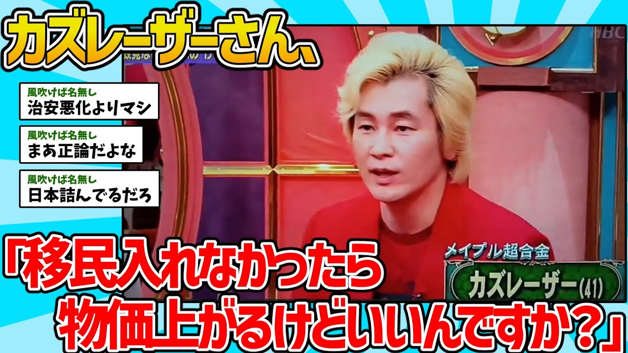 【2chスレ】カズレーザー「移民入れなかったら物価上がるけどいいの?」