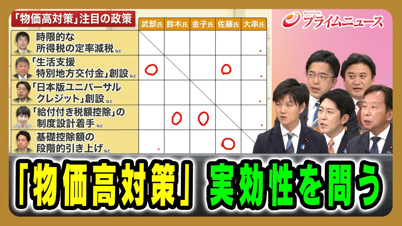 【5陣営 政策立案担当者 出演】「物価高対策」実効性を問う 武部新×鈴木憲和×金子容三×佐藤啓×大串正樹 2025/10/2放送<後編>
