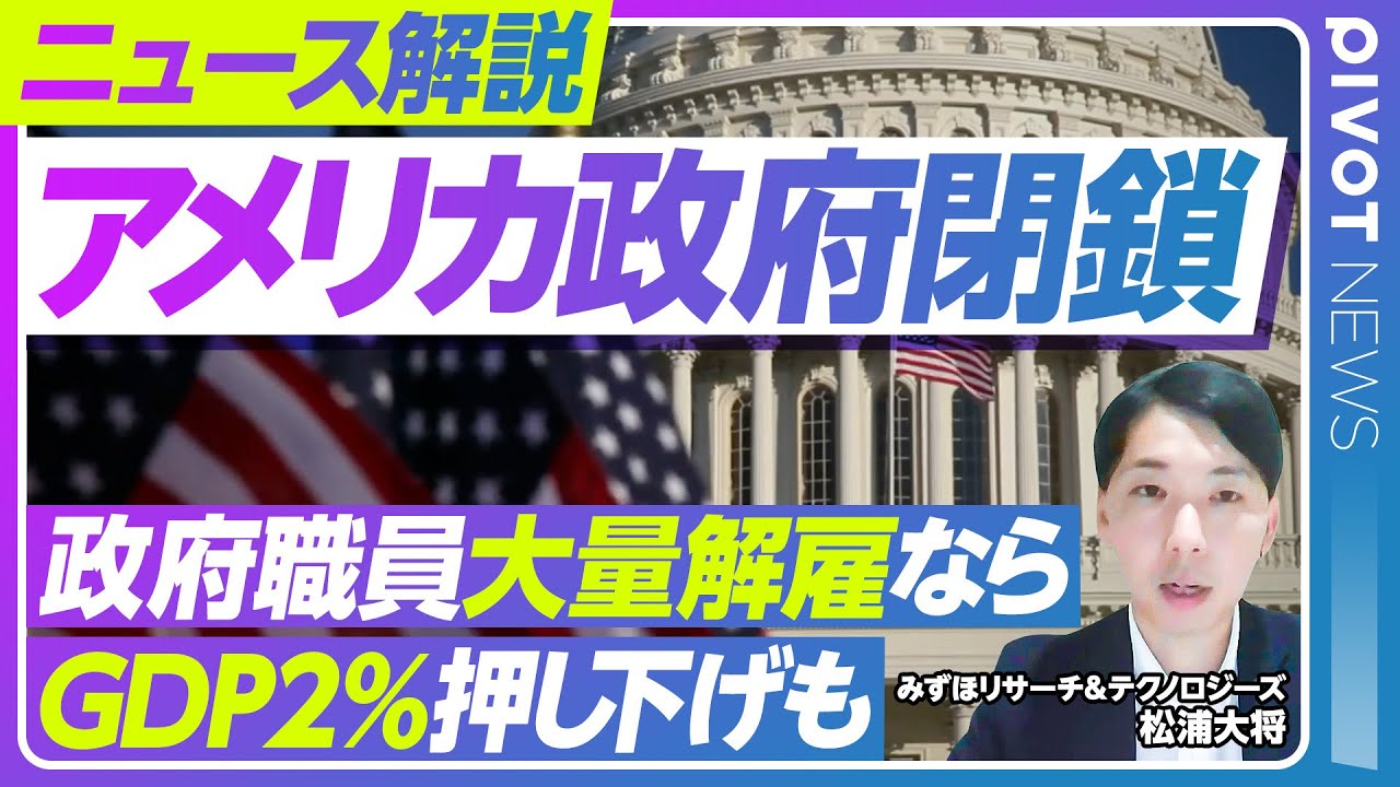【米国政府閉鎖】GDP・株価・為替への影響は?/過去の閉鎖との違い/職員大量解雇はあるか?/FRBの金融政策への影響/エコノミストが解説【PIVOT NEWS】