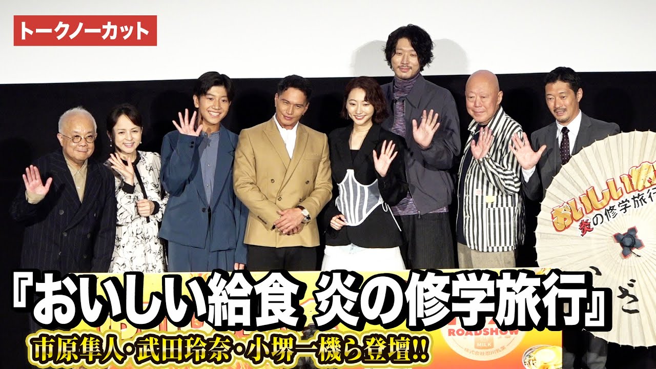 市原隼人、武田玲奈、田澤泰粋、栄信、いとうまい子、六平直政、小堺一機、綾部真弥監督が登壇した映画『おいしい給食 炎の修学旅行』完成披露舞台の模様をトークノーカットでお届け!