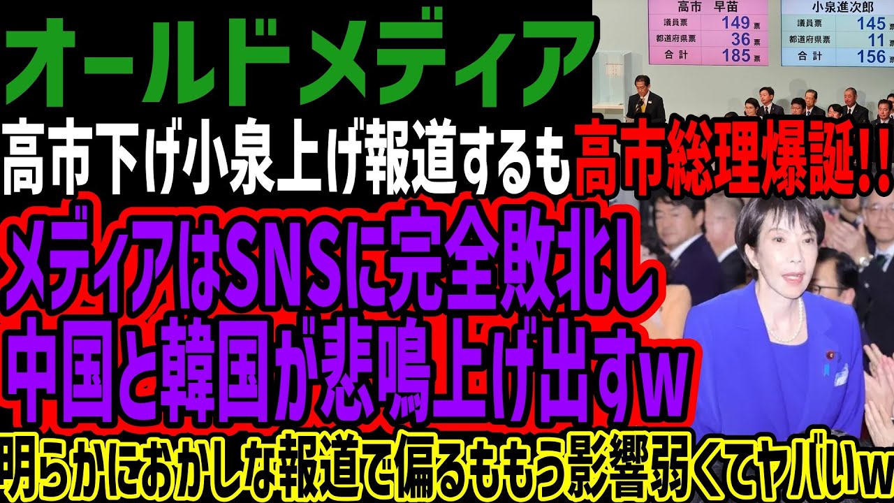 【オールドメディア】高市下げ小泉上げ報道するも高市総理爆誕!!メディアはSNSに完全敗北し中国と韓国が悲鳴上げ出すw明らかにおかしな報道で偏るももう影響弱くてヤバいw