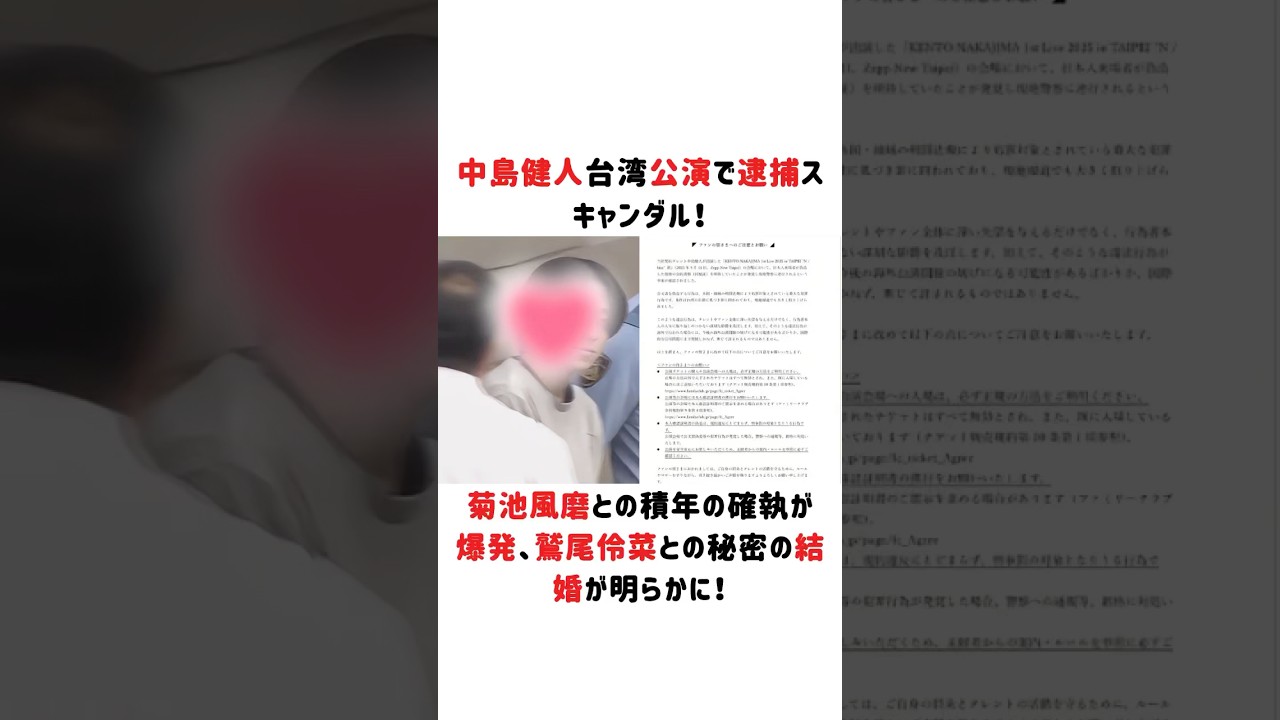 中島健人、台湾公演で逮捕スキャンダル!菊池風磨との積年の確執が爆発、鷲尾伶菜との秘密の結婚が明らかに!#中島健人 #菊池風磨 #鷲尾伶菜