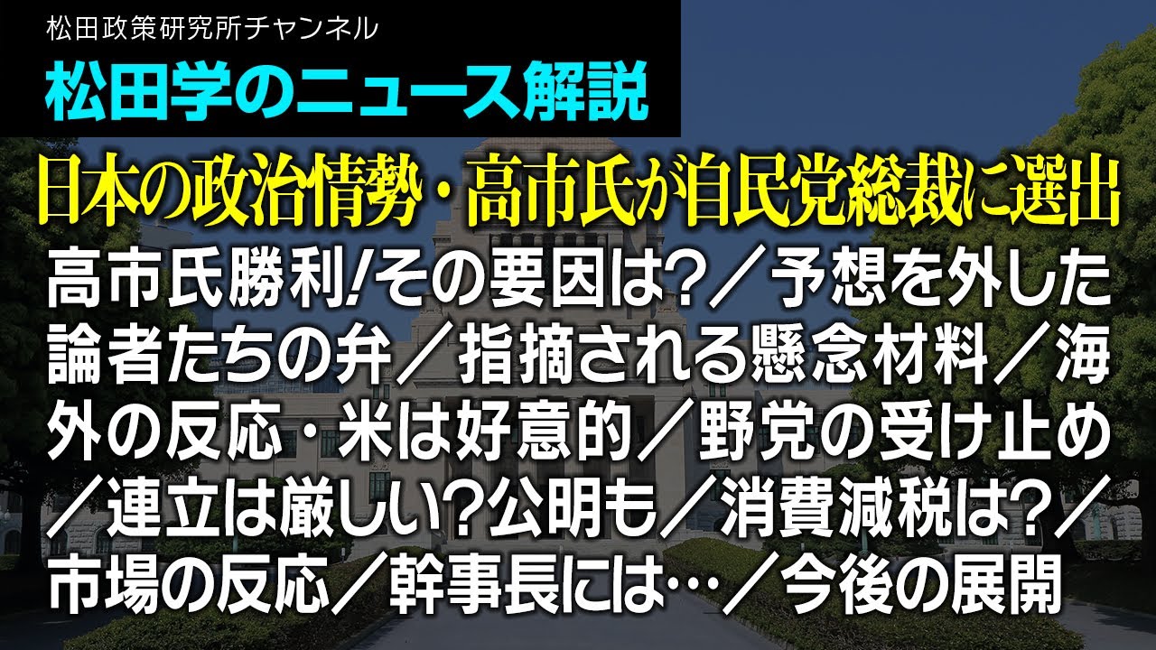 松田学のニュース解説【日本の政治情勢・高市氏が自民党総裁に選出】高市氏勝利!その要因は?/予想を外した論者たちの弁/指摘される懸念材料/海外の反応・米は好意的/野党の受け止め/連立は厳しい?公明も、他