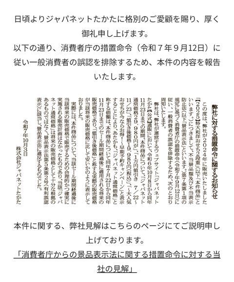 1:それでも動く名無し:2025/10/06(月) 11:12:23.94 ID:J9kk4Dxv0 今年はちゃんとキャンペーン期間終了後に定価販売する模様!! 4:それでも動く名無し:2025/10/06(月) 11:15:23.03 ID:N4/hHRejMまだこんなのやってるんだ 2ch2chblognews2ch