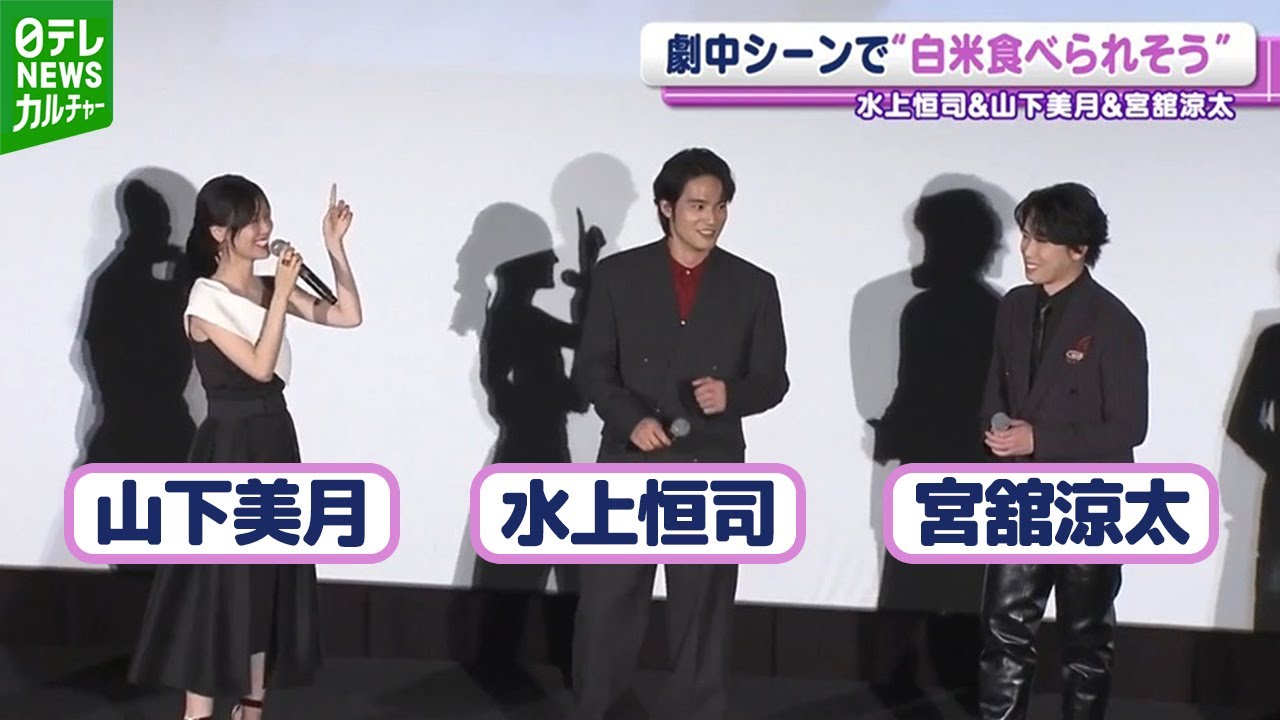 映画『火喰鳥を、喰う』(公開中)の公開記念舞台挨拶が行われ、主演の水上恒司さん(26)、山下美月さん(26)、Snow Manの宮舘涼太さん(32)たちが登場。山下さんが劇中のお気に入りシーンを明かしました。