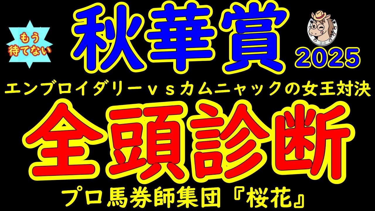 もう待てない!秋華賞2025二週間前レース予想全頭診断!さあ牝馬の頂上決戦!オークス馬カムニャックvs桜花賞馬エンブロイダリーは意外にも初対戦!スピードか?スタミナか?京都内回り二千で究極の戦い!の動画です。