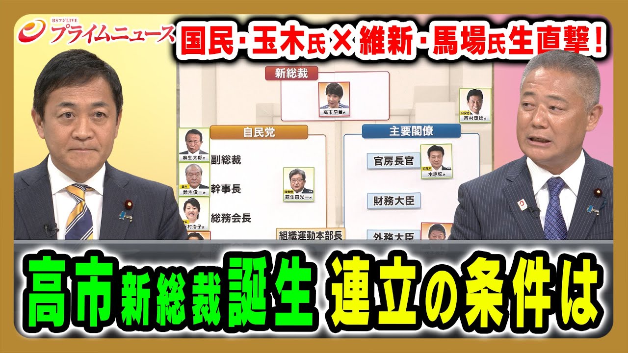 自民新総裁に高市氏が選出された。今後の政権運営のカギを握る維新・国民の対応は。国民・玉木代表と維新・馬場顧問の自民との連立・連携に向けた本音に迫る。
