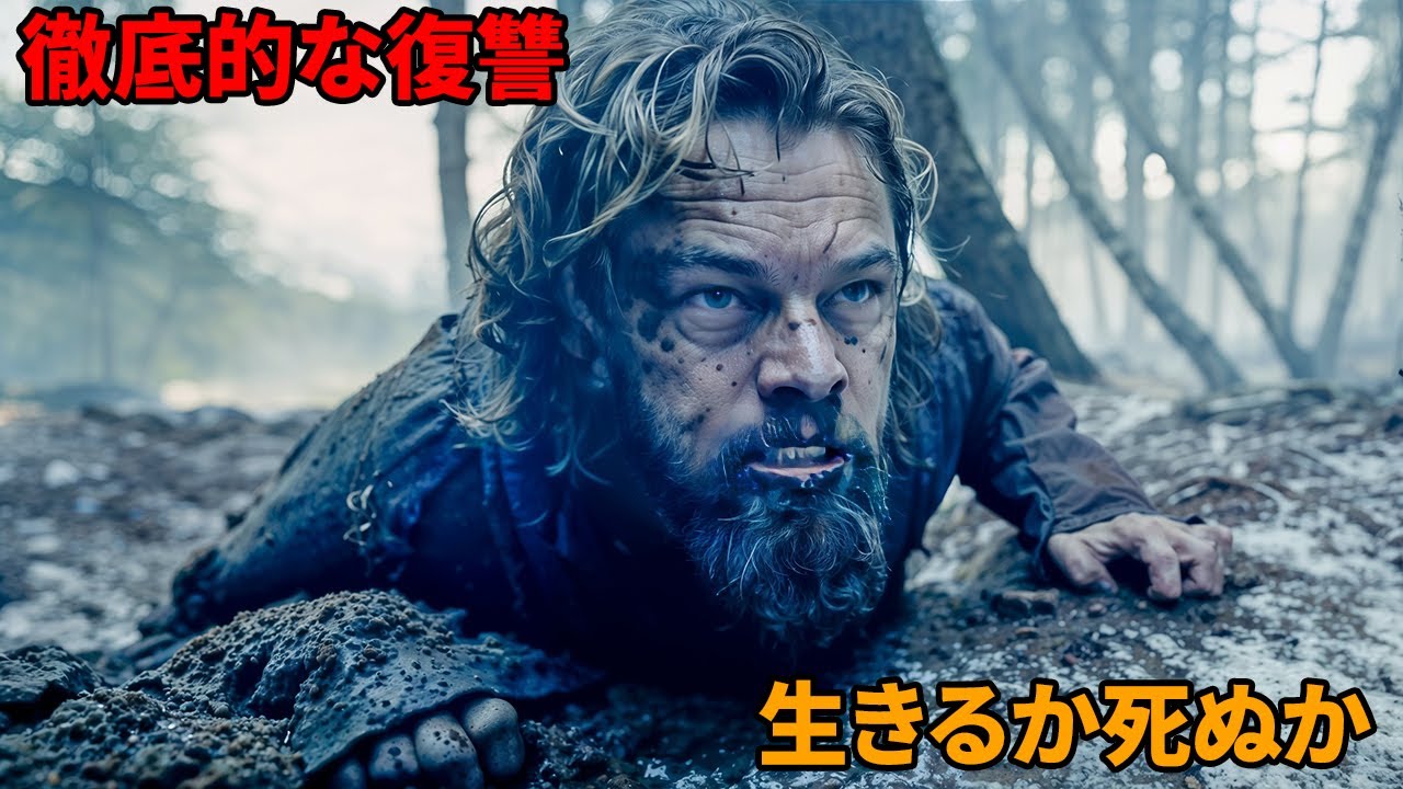 1人の男が熊に襲われ、肉はひどく 引き裂かれたが、彼は死ななかった。彼の 仲間は彼が足出まいになるのをやがり、彼 を急目にすることを決めたが、その男は 生き残ったのだ。彼は激しい吹雪に直面し ながらも何者にも屈服することはなかった 。なぜなら彼の石は本当に狂人であり、 その強烈な生命力には真な理由があった からだ。それはたった1人の息子の復讐を 果たすという決意だ。この人物は実在して おり、彼の名はグラスという。彼は文明の 見発達なアメリカの時代に生きていた。 そこでは入植者とインディアンとの間の 憎しみと対立がますます激しくなっていた 。新しいハンターたちが仕事を始めた時、 彼らはインディアンに襲撃された。わずか 数分で死体があちこちに積み上がり、 グラスが南に船へ逃げるよう時には ハンター隊は32人が命を失った。戦場で グラスは極度の不安に襲われていた。彼は インディアンが追跡をやめないこと、 そしていつでも攻撃してくる可能性がある ことを知っていた。彼らはまるで敵のよう だった。命を守るため、グラスは隊調に陸 を行くようした。しかし隊長は自身の経験 を過信しており、彼は船を離れて皆を森の 中へと進ませることを決定したが、森の中 でグラスに1つの事故が起こったのだ。道 を探している途中でグラスは突然何か ひどく変なものを感じた。振り返った瞬間 、クマが自分目がけて突っ込んできている のが見えた。グラスは大声で叫ぼうとした が誰にも届かない。熊に噛みつかれて あちこちに引きずり回された。噛まれる たびにグラスにとてつもない苦痛が 襲いかかる。ようやく熊が動きを止めた。 グラスは素早く死んだふりをした。それを 見た母は小熊の世話をするために立ち去っ た。この木を逃さずグラスは銃を拾い上げ て熊に発砲した。しかし熊を仕留める どころか帰って怒らせてしまった。母は 狂ったように再び噛みつきグラスを 引きずり回し始めた。今度はありったけの 力を使っている。一方でグラスにはもう 叫ぶ力さえ残っていなかった。幸いにも熊 はまた一時的に動きを止めた。その隙に グラスはナイフを抜いた。母が3度目に 飛びかかってくるのを待ち、グラスは連続 で何度も熊をさした。ついにグラスは母を 仕留めた。しかしクと一緒に崖から転落し てしまった。仲間がグラスを見つけた時 ミナーとした。彼らはすぐに母を引き離し たが目の前の光景に1人が即座に追とした グラスは運良く生きて履いたが深い傷を 追いその姿は悲惨としか言ようがなかった 。彼らは急いでグラスの傷を縫い合わせた 。あまりの激痛にグラスは長い間叫び続け た。彼らがグラスの折れた足の骨を正しい 位置にはめ戻した時、その痛みでグラスは 気絶した。仲間はあまり長くここに止まる わけにはいかなかった。彼らはグラスを 担ぎ上げて急いで出発するしかなかったの だ。彼らが凍った土地に移動するにつれて グラスをどれほど尊敬していても彼らが彼 を嫌う瞬間はきっとあった。誰もが彼が すぐに死ぬだろうと思っていたが彼は死な なかった。それは彼らの移動の速度に影響 を与えた。立光が三道に差しかかると、彼 らはグラスを運びながら山を登らなければ ならず全てがずっと困難になった。それ から確室が勃発し、最終的に隊長は彼らが グラスを見捨てることを決定したが、隊長 は彼を打ち殺すのが忍びなかった。彼が 死ぬまでグラスを見張る2人に褒美が約束 された。1人につき100ドルが支払わ れることになっていた。グラスの薄子と 1人の若者が残ることを決めたが、その中 にはという名の意地の悪いよ金の貪欲さ から残ることを選んだ。こうして3人は グラスが死ぬ瞬間を待ち始めた。翌日2人 の若者は食料を探しに狩に出かけつだけが グラスを見張るために残った。彼は突然彼 に向かってもう生きようとしなくていい。 自分が彼を送ってやると言った。異あると はグラスの口に布切れを押し込んだ。彼は わざとこれを窒息させようとした。 ちょうどその時息子が走って戻ってきて その光景を目撃し彼はすぐに必を殴った。 この行為はを激怒させた。彼はナイフを 引き抜いて少年を差し殺した。グラスは 絶望して叫んだが、息子を救うために何も できなかった。その後は残った若者を騙す ために嘘をついた。彼はインディアンが すぐそこまでいていると知らせ、その青年 を連れて行った。グラスだけが泥の中に 横たわったままでいた。どれほどの時間が 経ったのかグラスは突然目を覚ました。彼 は穴から剥い出そうとし、息子の死体の ところまでゆっくりと張っていった。 グラスは我が子にもたれかかり眠り込んだ 。再び目を覚ました時、彼はもうここに 止まることはできないと悟った。グラスは 最後に息子に別れを告げ、それから復讐の ために歩き出した上にしないことを願い、 彼は牛の骨を見つけた。最後の力を 振り絞り、彼は1本1本骨を折り、その上 についていた肉の切れ橋をちぎって口に 