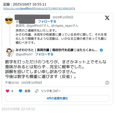 1:それでも動く名無し:2025/10/07(火) 15:47:56.21 ID:fYkVUONm0 2:それでも動く名無し:2025/10/07(火) 15:48:55.90 ID:trW9QKbq0馬鹿じゃないの?5:それでも動く名無し:2025/10/07(火) 15:50:40.57 ID:MGQFBlob0 なんでこんなことするん? ワイでもしないのに7:それでも動く名無し:2025/10/07(火) 15:50:40.88 ID:GQlqxqn80言い訳がダサすぎる 2ch2chblognews2ch