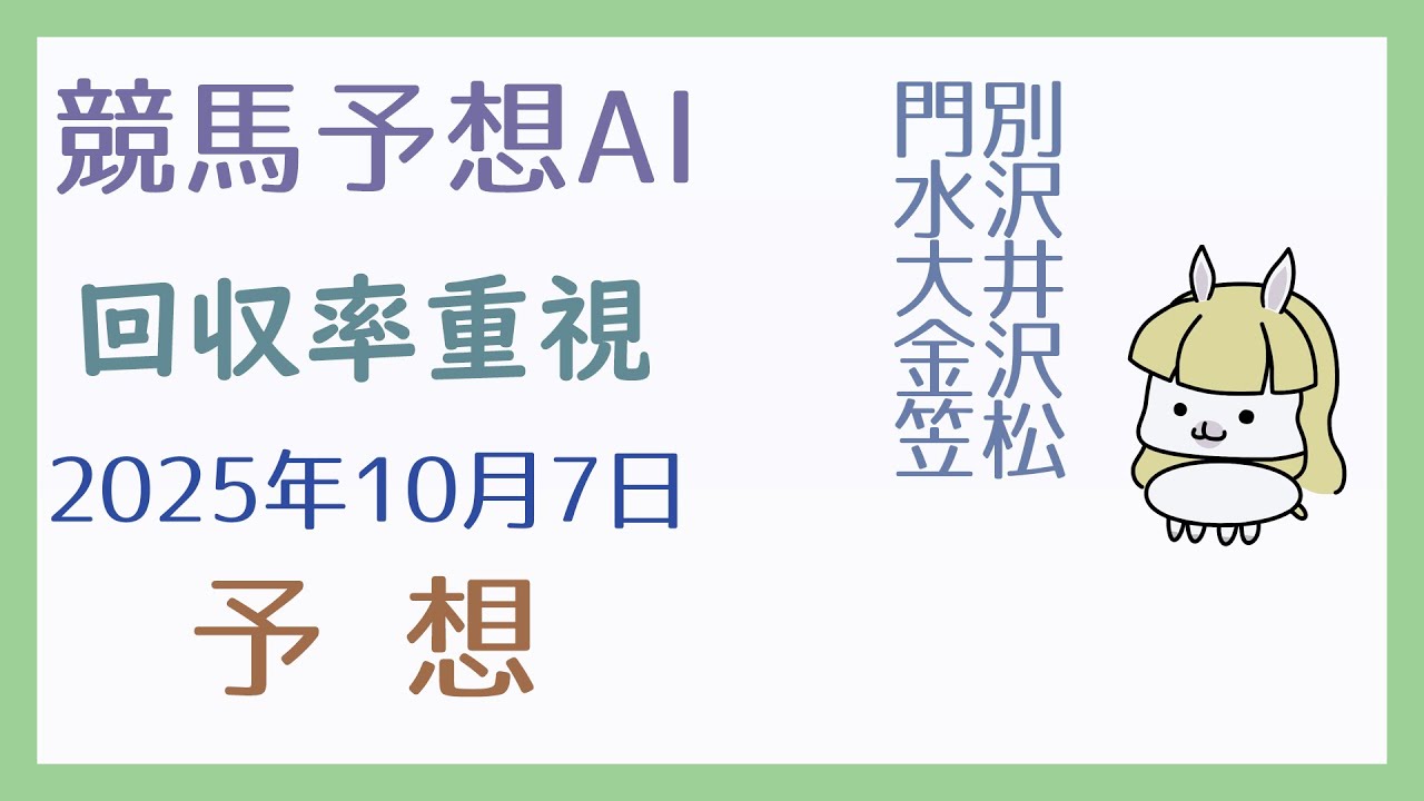 【競馬予想AI】2025年10月7日の予想【回収率重視】
