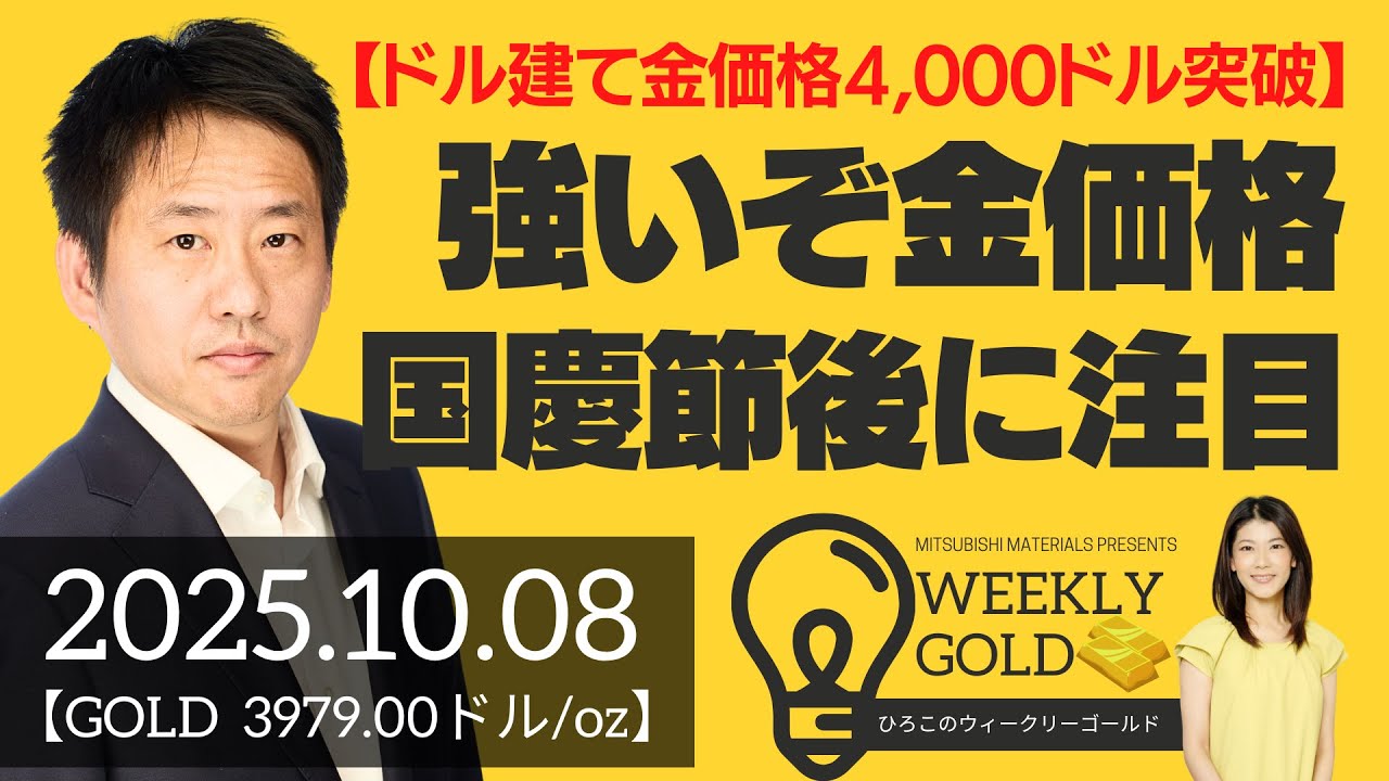 【ドル建て金価格4,000ドル突破】強いぞ金価格、中国の国慶節後に注目(三井物産 山口英雄さん) [ウィークリーゴールド]