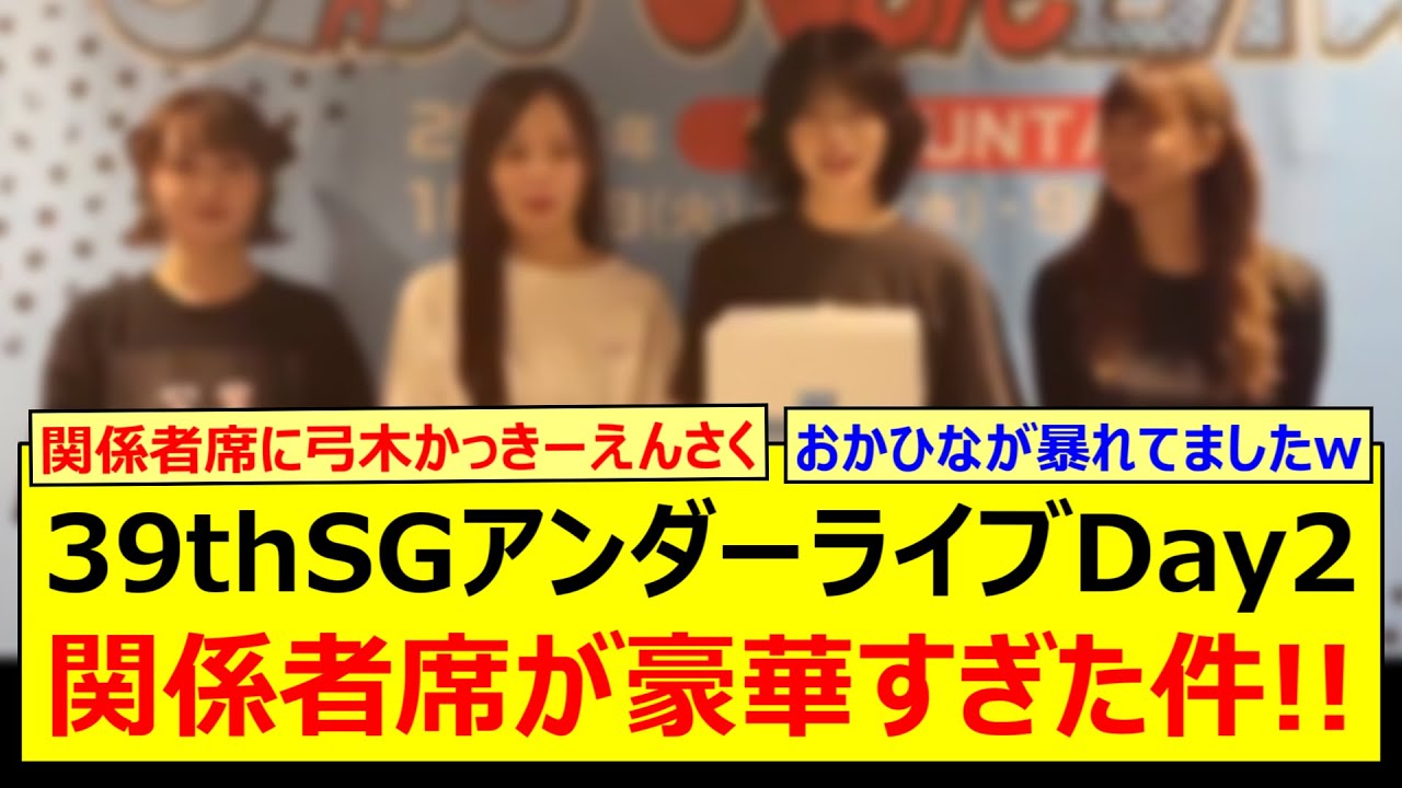 【衝撃】39thSGアンダーライブDay2の関係者席が豪華すぎた件!!【賀喜遥香・遠藤さくら・弓木奈於・岡本姫奈・池田瑛紗・菅原咲月・冨里奈央・一ノ瀬美空・五百城茉央・与田祐希・久保史緒里】