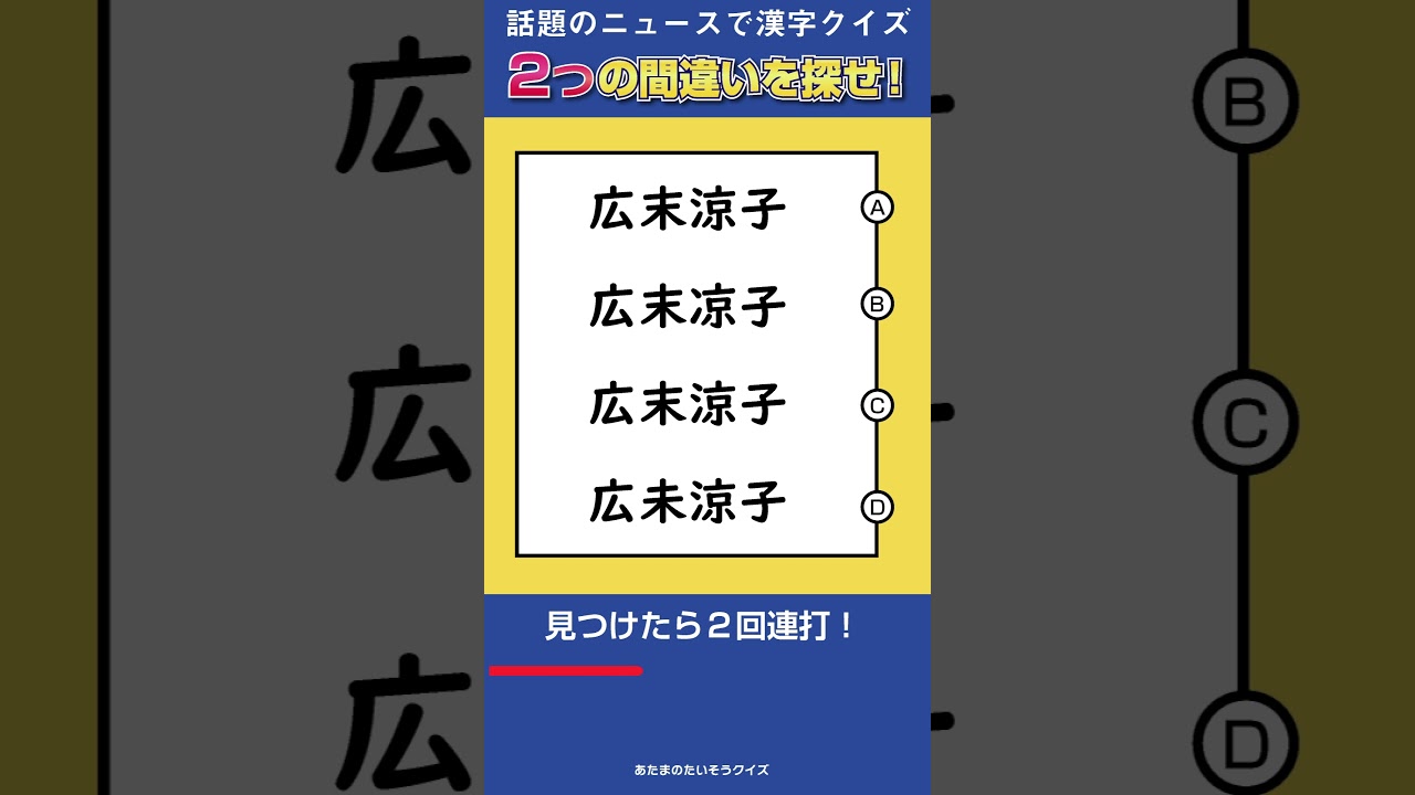 10/9「広末涼子」2つの間違いを探してください! #漢字間違い探し2つ、正しくないものがあるので探してください。 #漢字 #広末涼子 ◆チャンネル登録はこちら↓ https://www.youtube.com/@atamanoquiz?sub_confirmation=1 celebrity広末涼子