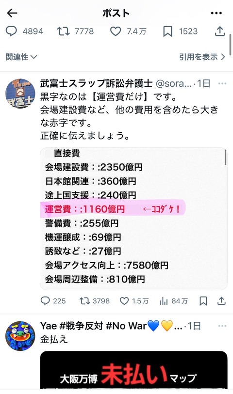 大阪府の吉村知事は、2025年国際博覧会(大阪・関西万博)の運営費が黒字になるとの見通しを示しました。来場者数は目標の2820万人の見込みで、収入は入場料が主で支出を上回る見込みだということです。入場料収入は当初見込みの約810億円を上回る約900億円に達する見込みだということです。— 吉村洋文(大阪府知事) (@hiroyoshimura) October 9, 2025