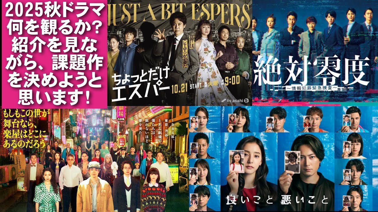 どうも皆さんこんにちは。ステリ作の七尾 よしです。はい、今日はね、10月9日 ですね。もう22時だ。もう10日になっ ちゃうな、あと2時間で。というわけで、 え、もう1週間以上経ちましたけどね、 10月になってから、え、秋ドラマ 2025、え、10月期の新ドラマ、ま、 10月から始まるね、新ドラマを、ま、 あの、気になるなんか見たいなと思う作品 をですね、11本ほど、え、紹介してです ね、またこのね、秋クールも1本、2本、 3本ぐらい、ま、何本になるかわかんない んですけど、え、考察レビュー動画作って こうかなと今のところ考えております。と いうことでさあ、何を見るかまだね、え、 この秋ドラマ僕1本も何もまだ見てない 状態なんですね。はい。もう始まった ドラマもあるみたいなんですけど、 とりあえず気になるドラマをね、1つ1つ チェックしていきましょう。ということで 1本目邪魔。はい。こちらですね。月曜 ドラマですね。月曜になるのかな?フジ テレビですから。え、10月6日ですから 、もう3日前にスタート。今週ね、 スタートしています。絶対レ度情報犯罪 緊急操作ということではい。え、舞台は 情報犯罪匿名体育 、え、高度な、え、高度な情報を 高度な、え、情報を情報技術を悪用し、 国民の生命と財産を脅やかす情報犯罪の 犯人たちを捜査機関で匿名流動型犯罪通称 特流に代表される特殊削ぎやサイバーテロ など私たちの身近な生活から国家の安全を 脅やかす大規模な犯罪まで数々の犯罪情報 犯罪に立ち向かうということで、え、主演 はですね、沢口泰子さんですね。で、安田 けんさん、え、横山ゆさん、え、黒島ユナ さん、えっと一渡るさんですかね、これ。 えっと、一かさんとかね。 どちらかというとどうでしょう。なんか あれだね。これ月ですよね。フジテレビの 月だけど。うーん。な、なんか月っていう とね、若い人向けの恋愛ドラマっていう 感じですけど、なんかどちらかっていうと これね、TBSの日曜劇場っぽいですよね 。で、あの絶対レードって昔ドラマがあり ましたけどあれと関係するんですかね。ま 、ちょっと絶対レド見てないんで分から ないんですけど、なんか時々なんて言うの かな、あのフジテレビってちょっとこう 若者向けにしてみたり、たまにこういう どちらかというとね、え、仮想の女の視聴 者、え、ちょっと年齢層低めの、あ、年齢 層高めのね、年配の方たちをターゲットに することがたまにある気がするんですけど 、え、今回そういう感じですかね。 あんまりほら月ってね、年配の人たちが 見るようなイメージはないんですけど、 まあ比較的内容も警察もとしては刑事も ドラマとしては手堅い内容ですね。ま、 今時ね、情報、情報犯罪って言われても、 ま、いわゆるサイバーテロとかね、え、 特殊詐欺とか、ま、あんまりもう 目当たるしさがないっていうか、もう いろんな映画とかドラマで、ま、散々扱わ れているんで、今更感あるしね、手垢が ついてる感じはするんですけど。さあね、 あとはもうストーリーどのように展開さ せるかっていうことで、え、脚本は、え、 こちらの方たちちょっとあんごめんなさい 。あんまり知らないね。うん。脚本次第 ですかね。それも脚本がね、3人いるので メインが誰なのかよく分かりませんけど、 やっぱちょっとね、ミステリー なんで、ちょっとミステリーに強い人を 脚本化に当てないとちょっと厳しいという か、いつも思うんですけど、こういうね、 ミステリーのドラマ、日本のミステリーの 映画とかミステリーのドラマって、ま、 ぶっちゃけね、あ、出来上がりよろしく ないんですね。多分ね、テレビとかその 映画の脚本家だ、そのミステリー、あの 脚本家の人たってあんまりミステリーが 書けないというか、ミステリーのこと知ら ないと言いますか。うん。どうなんのか なっていう。ま、中にはね、黒岩トさんの ように優れたミステリーの書きてもいるに はいるんですけど、非常に数が限られてる し、あ、大体こう、あ、出来がいい、出来 がいいとか、あ、ミステリーとして優れて いるなっていうのはもう大体限られた、え 、有名どころの脚本家さんなんですよね。 新人の方とかあんまり名前が聞かない方で こう優れたミステリーっていうのを見る ことがないんでね。もうね、前々から言っ てるんですけど、ミステリーのね、ドラマ とか映画作る時は、ま、プロのミステリー サッカーの監修を入れた方がいいような気 がするんですけどね。うん。ま、 ミステリー作家もね、え、手伝ってくれる かどうか分かりませんけどね。いや、 そんなんやるぐらいやったらあの、新作、 自分の新作書くわって感じになっちゃう。 結局アイデアを提供しないといけないので 、ま、実際手伝ってくれるかどうかって いうとね、ちょっと分かりませんけどね。 はい。というわけでね、え、早々たる顔で 、えっと、明子さんが主演で、え、内閣 官房長官安田健介さん。うん。ここら辺 ですかね