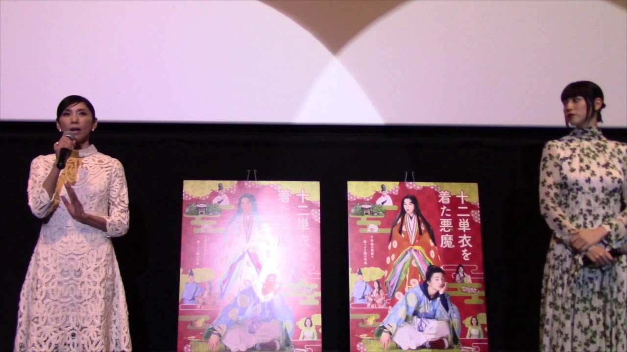 ▶脚本家・小説家の内館牧子の長編小説「十二単衣を着た悪魔 源氏物語異聞」を、女優・黒木瞳がメガホンをとり映画化!11月14日(土)、映画『十二単衣を着た悪魔』公開記念名古屋舞台挨拶がミッドランドスクエア シネマで開催され、映画上映前にメガホンをとった黒木瞳監督と、カリスマ的キャラクターの弘徽殿女御を熱演した三吉彩花さんが登壇!