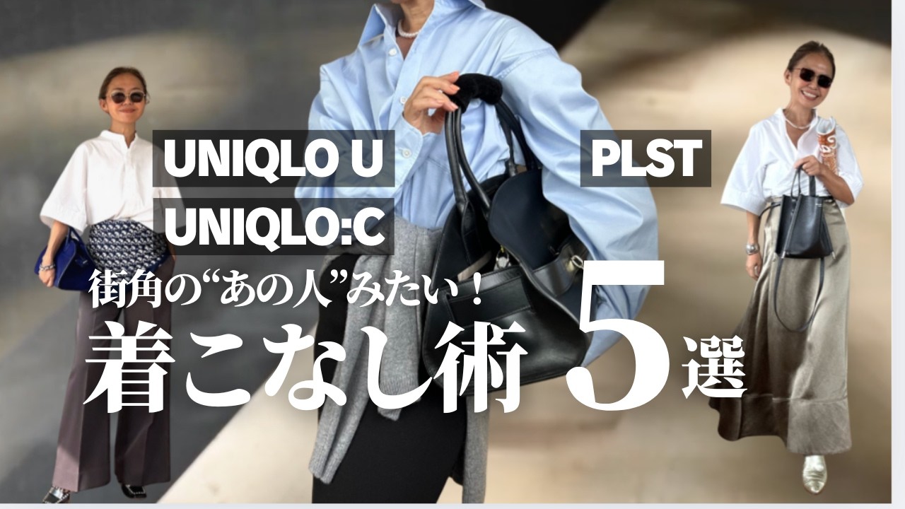 皆さん、こんにちは。ちこです。元気が 湧いてくる大人のおしゃれ。今日も始めて きましょう。今日はですね、新企画です。 テーマはですね、街のおしゃれなスナップ から学ぶマネッコスタイリングです。 なんか楽しそうでしょ?いつもなんか同じ ような着なしになってしまう。どうやって も赤抜けないんだよな。そんなおしゃれ 迷子さん必見です。服を着るから着こなせ 。このシリーズでは世界の街角からセンス のいいスタイリングをお手本に私らしい 解釈でリアルに再現していきます。しかも 使うのは私がこれまで動画でご紹介してき たユニクロエアGU。それに私の愛用品の アイテムを加えてこちらにちょっと スタンバイしておりますよ。すぐに真似 できて明日のおしゃれが楽しくなる。 こんなスタイリングをご紹介していきたい と思います。街角で思わず取り返って しまうようなあのおしゃれな着こなし。実 はちょっとしたコツで誰でも叶うんです。 そのポイントも丁寧にお伝えしていきます ので、私には無理なんて思わずにまずは 好きなスタイルを見つけるところから始め てみてください。カフェで私とおしゃれ 投稿してるような感じでリラックスをし ながらお付き合いいただければと思います 。それでは早速最初のスタイリングご紹介 いたしましょう。スタート。 1つ目のスタイリングです。お手本にする のはこちら。こちらのスタイル。思わず 見惚れてしまいますよね。ベースは シンプルなシャツとパンツですが、 スカートとバッグで一気に花ぎますね。 まるでアートを身にまとったような計算さ れた色とバランスがとっても洗練されてい ます。シンプルなアイテムを特別なものに 見せる。まさに大人のスタイリング テクニックです。それでは早速ね、マネコ で作っていきたいと思いますが、まずは 使うアイテムご紹介いたしましょう。 こちら主には3点です。えっと、まずは白 シャツはこちら。えっと、プラステ& 春ノブ村田のコラボアイテムですね。以前 ね、動画でも全力でご紹介させていただい たアイテム非常に大活躍しましたね。夏、 そして秋。まだちょっと暑いですから、 まだまだ使えそうなアイテムです。 ゆったりシルエットで、お袖がベル スリームで、そして後ろもね、このように タックが入っていて、全体的に立体的な シルエットの白です。時はね、やや クロップドけですね。インでもアウトでも 楽しめるアイテムです。そして合わせた パンツがこちら。もう色がね、最高に素敵 なんですよ。ブラウン、グレー、そして ちょっとだけパープルを刺したような綺麗 な色のパンツですね。スラックスパンツ です。センタープレスがもうピシっと効い ているお気に入りの春信村田のパンツです 。今回のスタイリングに欠かせないのが スカーフですね。ネイビーブルーの クリスチャンディオールのちょっと ヴンテージのスカーフですかね。もう すごい古いアイテムです。それではこちら の3点を使ってマネコで変身。 [音楽] スタイリングのポイント3つご紹介し ましょう。1つ目は白プラス綺麗目パンツ で宣伝された美しさです。クリーンな白 シャツと落ち着いたグレージュのパンツで 作る大人の余裕を感じる組み合わせです。 パンツのセンタープレスとシルエットの 直線的なラインがかっこいい印象です。 そしてポイントの2つ目。スカーフを ウエストに差し色として効かせます。 スカーフを腰回りに取り入れるだけでこで 全体がぐっと立体的になり華やかになり ますよね。そして視線を上に集める効果も ありますので足長に見える嬉しいトリック ですね。実は少しだけ実際のウエストより 高い位置にスカーフを巻いております。 そして巻いたスカーフはですね、真ん中 より少しずらすのがこだわりポイントです 。実はね、真ん中にするとちょっと金太郎 さんみたいな印象になってしまうんですよ ね。なので少しずらすポイントですよ。 そしてポイント3つ目。これかなり重要な ポイントです。スカーフとバッグの色を 合わせて繋いでおります。お本デは スカーフの中に入った赤を拾って赤い バッグ。そして私はスカーフのブルーを 拾ってブルーのバッグを持っております。 これでね、一気に全体のコーディネートが まとまると共におしゃれ度がアップするん ですよね。おしゃれだなあ。もうバッグを ね、アクセサリーのように使っているん ですね。これ割と真っこしやすいと思い ますので、是非ね、あの、取り入れて いただけたらと思います。プチプラでもね 、こういう色物の小物、スカーフやバッグ 揃えることができますので、是非 チャレンジしてみてください。一気にね、 シンプルないつものシャツ、パンツデが 華やかにアップグレードすること間違い なしです。ね、白シャツツって本当無難に なりがちなんですけれども、小物使い、 また色遣いでまるで違う表情をね、見せて くれますよね。スカーフはもう特別な日 だけではなくて、日常の着粉な