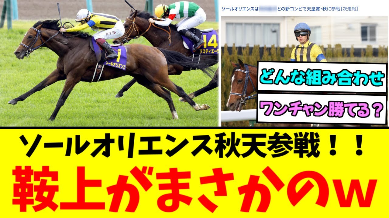 『ソールオリエンス まさかの新コンビで天皇賞秋 参戦決定!!』に対する競馬民の反応集をまとめました。