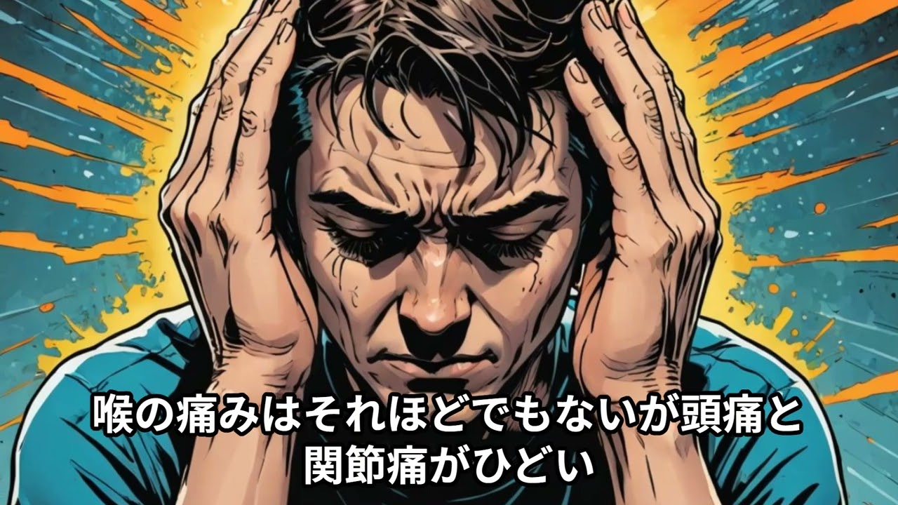 初日喉が痛くなる。ちょっと身体がだるい 。熱はないが熱っぽい。ちょっと普段と 違う気がしたから風を早く直すつもりで 地下受信。喉が痛いと言った瞬間コロナ 検査をされる。妖精確離。ひどい状態では なかったのでトンプ黒人処法を1度は遠慮 した画念のためと思い低士信頼した。2日 目発熱し出した38.5 喉の痛みはそれほどでもないが頭痛と関節 痛がひどい。早速ロキソ人のお世話になっ た。3日目。ロキソ人の効果がある時は 活動できるがそれ以外はきつい。発熱頭痛 がひどい。関節通話感はしつつあるが鼻水 無職透明が止まらない。4日目。3日目と あまり変わらない。ここまでのポイント。 ト腹は絶対処方してもらおう。