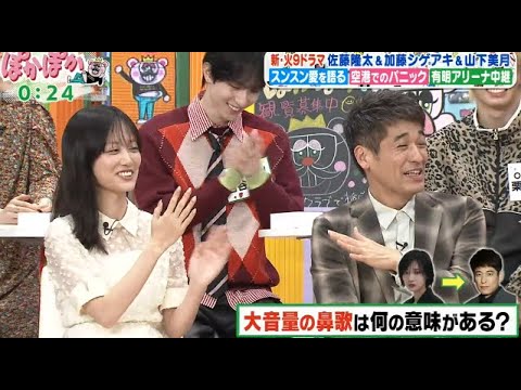 🔴NEW🔴ぽかぽかSP:佐藤隆太×加藤シゲアキ×山下美月、現場の謎ぜんぶ聞いた!『ぽかぽか』は、フジテレビ系列で2023年1月9日から毎週月曜日から金曜日の11:50[注 1] – 13:50(JST)に、フジテレビ7階「ぽかぽかパーク」から生放送されているバラエティ番組[6][7]。 ここでは派生番組の、直後ミニ番組『ぽかぽか延長戦』、ダイジェスト番組『今週のぽかぽか』、特別番組『ぽかぽかゴールデン』についても記述する。 celebrity山下美月