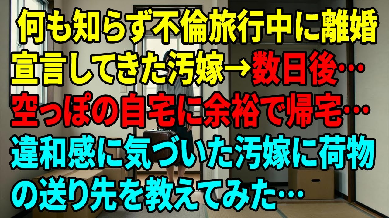 何も知らず不倫旅行中に離婚宣言してきた汚嫁→数日後…空っぽの自宅に余裕で帰宅…違和感に気づいた汚嫁に荷物の送り先を教えてみた…