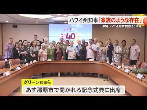 沖縄との姉妹定験40周年を記念し、沖縄 を訪れているハワイ就知事が今日玉知事と 面談し、さらなる有効関係の構築に向け 交流を深めていくことを確認しました。 今日県庁を訪れたのはハワ州の女手 グリーン知事を始め人や議員など19人 です。 は沖縄とハワイの姉妹40周年を祝うため に昨日来ました。 知事はハワイとの信頼関係を大切にし、次の世代についできたいと訪問を歓迎しました。 グリーン千ジラは明日那覇市で開かれる記念式店に出席する他、明後日のナ覇大津引きにも参加するということです。 一方、県立図書館では戦後 80年の節目に合わせて第 2 次対戦中のハワイをテーマにしたドキュメンタリー映画が上映されました。 リムードバイフォース強制退去はホノル出身のライアン川本監督が 2023 年に発表したドキュメンタリー映画で沖縄では初めての上映となります。 1941年の新珠攻撃後、ハワイでは多く の日経人が人種差別にさらされ、住む場所 を追われ、強制収容されました。 [音楽] [音楽] 映画では適正外国人として迫害を受けた 日経一世の苦悩や戦後アメリカ政府などに 謝罪と保障を求めた若い世代の戦いを描い ています。 [拍手] 上映後のトークセッションでは参加者が 戦争に翻弄されたハワイの日経人の歴史を 沖縄と重ね、こうした記録を受け継いで いく重要性を語り合いました。 are会を企画した県立図書館とハワイ立図書館は今後も資料の交換やイベントの共などを積極的に行い交流を深めたいとしています。 [音楽] [音楽]