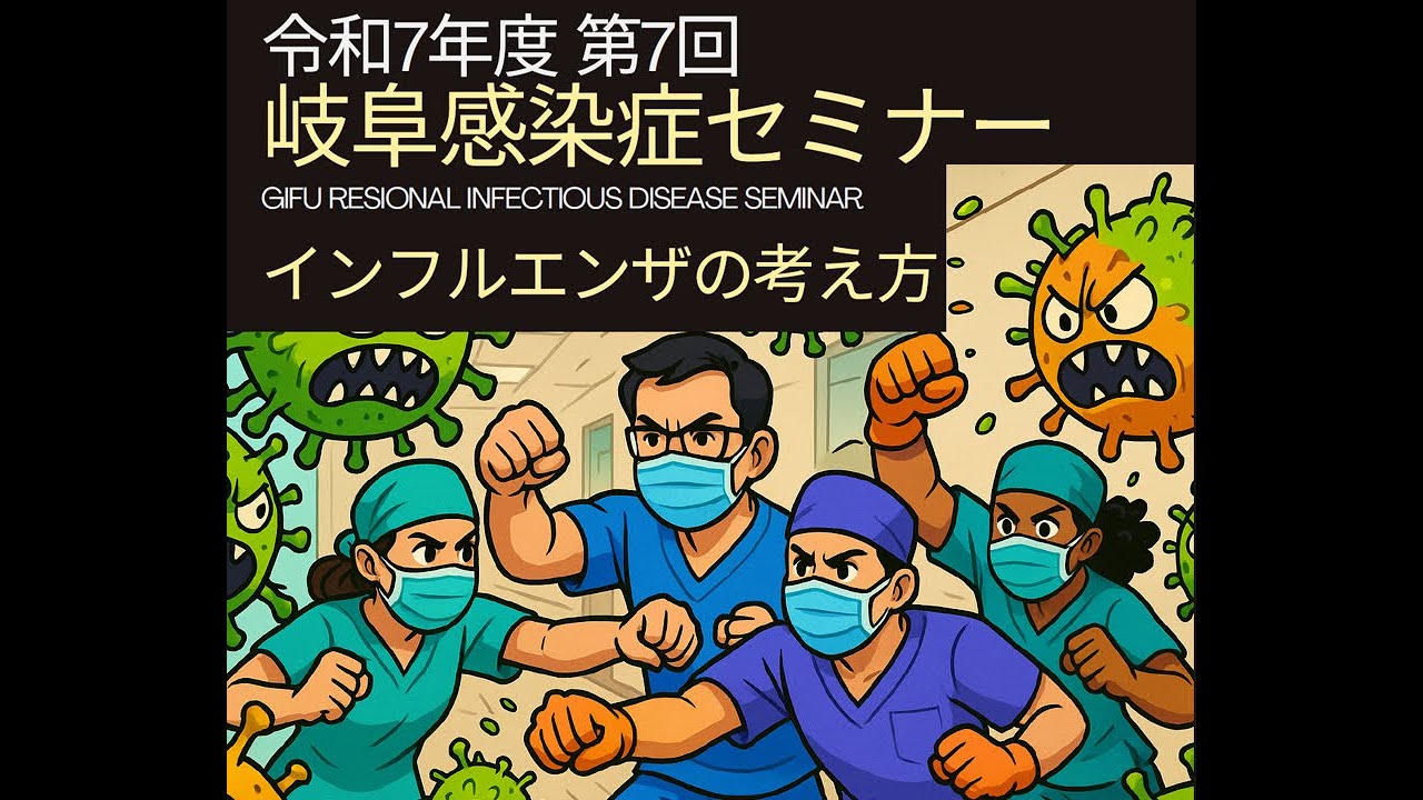 2025年(令和7年)10月3日(金)18時半から、Zoom webinarで開催した令和7年度 第7回 岐阜感染症セミナー、「インフルエンザの考え方」の講演動画です。岐阜県総合医療センターの大島 良先生に講演して頂きました。