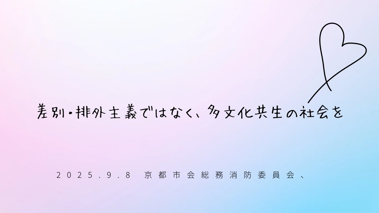 2025年9月8日 京都市会総務消防委員会 差別・排外主義ストップ