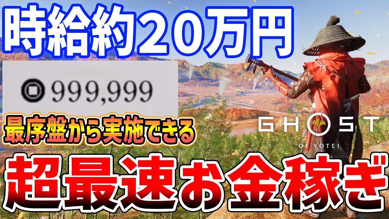 ウスピロちゃんです。今回なんですけれど も、ゴーストオブで最実施することの できる最速のお金稼ぎについてご紹介して いきたいと思います。もうほんの数秒で 数百円数千円稼ぐことができます。ま、1 時間もかければ10万、20万みたいな 感じで大量のお金が稼げるので現状ま、 このやり方が最も効率がいいかなと思い ます。で、以前ご紹介した、え、銭ジきに よる稼ぎもあったんですが、え、全盛紀の 銭ジきよりも優秀な稼ぎ方だと思います。 で、今ではね、もう銭にきは、え、ナーフ されてしまったのか、あるいは、ま、一定 量稼いだですね、1回の試合につき50円 ぐらいしか儲からなくなるので、ま、非常 に非になってしまうんですよね。ただ今 から説明するやり方はそういった上限も ありません。はい、ではね、説明していき ましょう。え、ではまず場所からです。え 、結論から言うとこちらとかち神峰という エリアになります。最初のエリアがここに あり、ここに成果という開始ポイントが ありますね。最初の開始地点からマップ 右上方向に進めばこちらのとかち神峰と いうエリアに到達できます。え、もう本当 にね、もう1番最初の何のメインクエスト も進めてない状態からとかち神自体には 向かうことでの、ま、走っていくなり馬に 乗っていくなりしてはい。こちらまで来て ください。とか神峰のかなり北側に位置し ている怪しげなヤですかね。え、そういっ たポイントがあります。で、この怪しげな ヤにファストトラベルしてください。まだ 到達したことがなければファストトラベル は当然できないので、え、自力で向かう ようにしましょう。で、ファストトラベル するとこういった場所にワープします。で 、ここで背面方向にはこのように崩れた ようなカオがあります。ま、カオというか ナヤですかね。で、そのナヤのすみっこに はい。袋が落ちていて、ここからお金が もらえるんですね。今回は127円でした 。で、ここまでできたらスタートメニュー を開きさらに設定の中のチェックポイント から再開を実行しましょう。ここの画面で 三角ボタン押すだけで、え、この画面に なります。で、バツボタン押しては実行。 そうすると、はい、このゲームは 素晴らしいことにロード時間が非常に短い のですぐさま ナヤの目の前から再スタートになります。 なんとお金は復活しているんですね。いや 、でも再スタートしたんだからお金減るん じゃないかって思うじゃないですか。 じゃあ、今、え、僕のお金は4361円 という風にね、画面左上に出ていますよね 。これ覚えといてください。お金拾います 。194円拾いました。で、ま、その時々 でね、金額は増減します。で、また設定の 画面からチェックポイントに巻き戻し。 そうするとはい。お金がちゃんと増えてる んですね。今度は4555円になってます と。で、また振り返って金を拾う。 メニューを開いてチェックポイントから リスタート。もうこの繰り返しです。 この繰り返しでどんどん金が手に入るん ですね。はい。もうどんどんどんどんお金 が稼げてしまうわけです。いや、非常に 素晴らしい稼ぎ。今までの銭に弾きが まるで嘘のよ。はい。俺たちは一体何の ために銭を弾いていたのか。こんなにも 素晴らしいやり方が実は存在していたわけ ですね。時玉405円 、ま、破のお金がね、数秒で手に入ったり もします。もうこれを繰り返していき ましょう。はい。もうだんだんね、手順も 洗練されてくればパッパッとね、やること ができるんで、パッパッパ進めていき ましょう。はい、また振り返ってはい、 また409円ありがたい。どんどん金を 増やしていきましょう。ま、こう倉庫し てるうちにね、もうあっという間に 6000円超えていて、ま、あと数分も 経てば1万円になるでしょうか。はい。 どんどん稼いでいきましょう。さあ、 よいしょ。 ま、まだね、動画撮り始めて大体4分 ぐらいしか経ってないんですけど。はい。 ま、正直、あの、今日紹介できる話はもう これだけです。ええ、 いや、でも本当ね、このゲームはもう僕は もうかなりやり込んじゃったんで、もう ほぼほぼやることがないんだけどいや、 早くアップデート来てほしいねえ。せめて あのニューゲームプラスはもし時間かかる んだとしたら、あのなんだろう、攻略する 拠点あれをリセットできる機能とか欲しい な。せめてね、せめて拠点リセット機能で また攻め直せる機能が欲しいなと思います ね。え、ま、理想言えばね、ニューゲーム プラスが実装されることですけどもはい。 倉庫を話してる間にも9400円、あっと いう間に1万円超えますと。で、これを1 時間も繰り返せばもう10万2万 ぐらいいきそうですよね。はい。大体、ま 、説明コミ込みで進めて、え、5分ぐらい で 、まあ56000円ぐらい儲かったのかな 。はい。元々4000円ぐらい持っていた ので。 よいしょ。こんな感じですかね。もう ちょっとスピーディにやっていれば説明 抜きでやっていればま