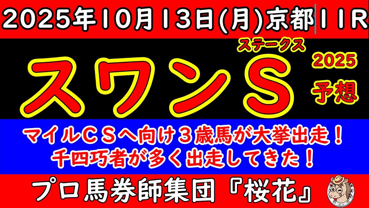 はい、こんばんは。プロバ券集団大花です 。本日はですね、10月の13日月曜日 京都11レススワステークス2025。 こちらのレス予想ですね、展開ボード交え てご紹介していきたいと思います。はい。 ま、このレースですが1着にマイル チャンピオンシップへの優先出走権がある レースというところですけど、マイルだと ちょっと長いなという馬が割と揃ったん じゃないかなというところでね。どちらか と言うと、もうこのぴったりですっていう 馬が非常に多いなというところです。そう いったところでさて、ま、権利っていうの はさておいてこの例えばですね、 ウインカーネ、え、じゃなくてウィン マーベルですね。カーネリアンはこな間だ スプリンターズステークて勝ちましたけど 、ま、同じ冠り名のウインマーベルなんか もね、まだマイルチャンピオンシップでも ね、例えば、えっと、去年なんか3着し てるようにやっぱり力的には通用する馬こ に出走してるのでね。ま、そういった ところでは割とね、事実戦、ま、この早く なりましたけどメンバーは揃ったなという ところでね、非常に、ま、面白い1戦かな というところです。そういったところで、 ま、まずですね、ま、レース予想をして いきたいと思いますが逃げ馬ですね。ここ ね、逃げたい馬というのが、まあ、1等 のみなんですよね。これが17番朝キング ということで、ま、この馬半球杯の、ま、 あのレース京都のね、えっと、今年は行わ れましたけど、2月22日のレースで逃げ て、そしてもうあとちょっとのところでね 、差し切られたように、ま、4ぴったりの 馬なんですよね。むしろには忙し、え、 ちょっと忙しくて6は長いというタイプ ですので、そういった点でもここね、目標 に、ま、来たというところがあります。 はい。そして2番手にですね、続くのが8 番ですね。こちらがワールズエンドという ことで、この馬はね、ま、3照クラスを 買ったばっかりっていうところですが、 全くそこを見せていないまで、ま、今4歳 ではあるんですが、ま、あの、1勝クラス をですね、ま、勝った後、ま、2勝クラス を2戦で突破、3勝クラスも2戦で突破と いうところでね、ま、あの、勢いっていう 点ではね、ま、連勝版には劣るんですけど 、ま、それでもね、ま、あの、着実に消求 してもすぐ、ま、相手にね、適用でき るっていうのまあまあ有利な部分かなと 思います。で、この馬確か毎日じゃなかっ たな、何かで2着しました。アーリントン カップだったかな。ま、そういったところ で、ま、このワールドエンドね、4のが、 まあ、今はいいんじゃないかなという ところではスピード見せられるんじゃない かなというところです。 はい。後ろにいるのが14番 アドマイアズーム前走のNHKマイル カップはもう謎の配線でしたね。ま、1番 人気でしたけど全く伸びなかったと。で、 これはハイペースにちょっと巻き込まれた 節があるんで、案外この、ま、スロー ペース専用っていうのはね、それは、まあ 、2、3層前のね、朝杯のレースなんかは 前半スローで後半も後半というか中盤も スローというね、超ドスローの展開になっ たってのが思い出されますよね。ま、そう いった点ではね。うん。あの、 ニュージーランドトロフィーなんかもそう なんですけど、スロール決めて勝負を得意 としてる馬ですので、朝からキングが 引っ張る流れ次第でどうなるかっていう ところですね。内側にいるのが5番の ウインマーベル。ま、こちらは前走安田 記念から、ま、久々っていうところです けど、ついに、ま、最近はマイルでも崩れ なくなったっていうところが特徴です。 ただこの馬12月21日の阪神カップの、 ま、いわゆるスワンステーク数と同じ部隊 である京都の、ま、外回りでですね、8着 に破れてるんですが、この時と、ま、あの 、今のね、バ場状態は違うっていうところ は流意が必要ですよね。 はい。それから12番ですね。これが、え 、外側にいるのがロジリオンですね。ま、 相手なりに走る馬っていうところですが、 ま、なかなか勝ちきれないっていうのが 特徴です。で、オープンというか リステットは勝ってるっていうタイプで 楽用ステークスは勝ってるので、直線の、 ま、外回りコースっていうのは合ってると 思いますが、専用がちょっと忙しいかもっ ていうところがあります。ただこの馬ね、 ま、あの、4の重賞でも、ま、2着ね、2 歳の時あるように本質差専用の馬がいいん じゃないかなというところもあります。 はい。1番ですね、内側にいるのがランス オブカオス。NHKマイルカップはポーン と高スタートを決めましたけど、ハイ ペースにちょっと巻き込まれた形でした。 ただ、ま、この4番手のね、先行場で粘っ た唯一の馬と言ってもいいでしょうね。で 、どちらかというとこの馬もスローの決め て勝負の方が割と得意として るっていうところがあるので、ハイペース に巻き込まれたっていうところをどう解釈 するかですね。朝からキン