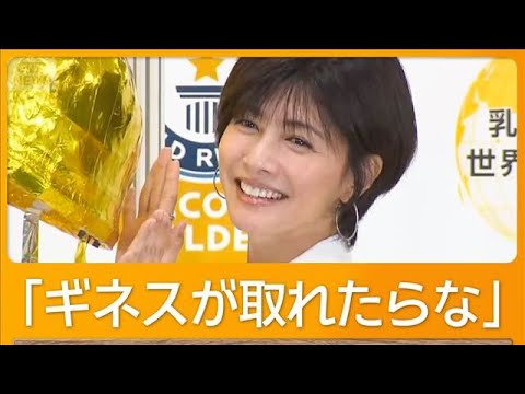 ありがとっていう気持ちでそこに立っていると、あの、自然と笑顔で頑張れますし、それから次の自分に出会えるしみができるんですよね。 だからありがとうっていう言葉を もう重ねられて、あ、よくばこのありがとう重ねる回数世界一でギネスが取れたらなと 思っております。 内田ゆさんが目指したいギネス世界記録を 悪化したのは世界で最も売れた入酸金飲料 として登録されたヤクルトの認定式です。 健康的な美の秘訣を聞かれた内田さんは やっぱり自分の脳みそがこうやってやっ たら元気になるぞって思うことを自分が 選んでいく。 これ何でも前向き強制って自分で名付けてるんですけど、自分で管理できると本当に強いなと。それは年を重ねて思うようになりました。 [音楽] そんな内田さんは来月 50歳の誕生日を迎えます。 おめでたいことでございますよ。はい。あの、人生 100 年時代ってね、今言われてますし、半分まで来ました。やった。自分を磨いていかなければうん。 枯れていっちゃうかなって思うので、 ありがとう。重ねる回数世界一取れたら なって思いながらそれで皆さんと心地よく 仕事ができるような自分でいたいと思い ました。