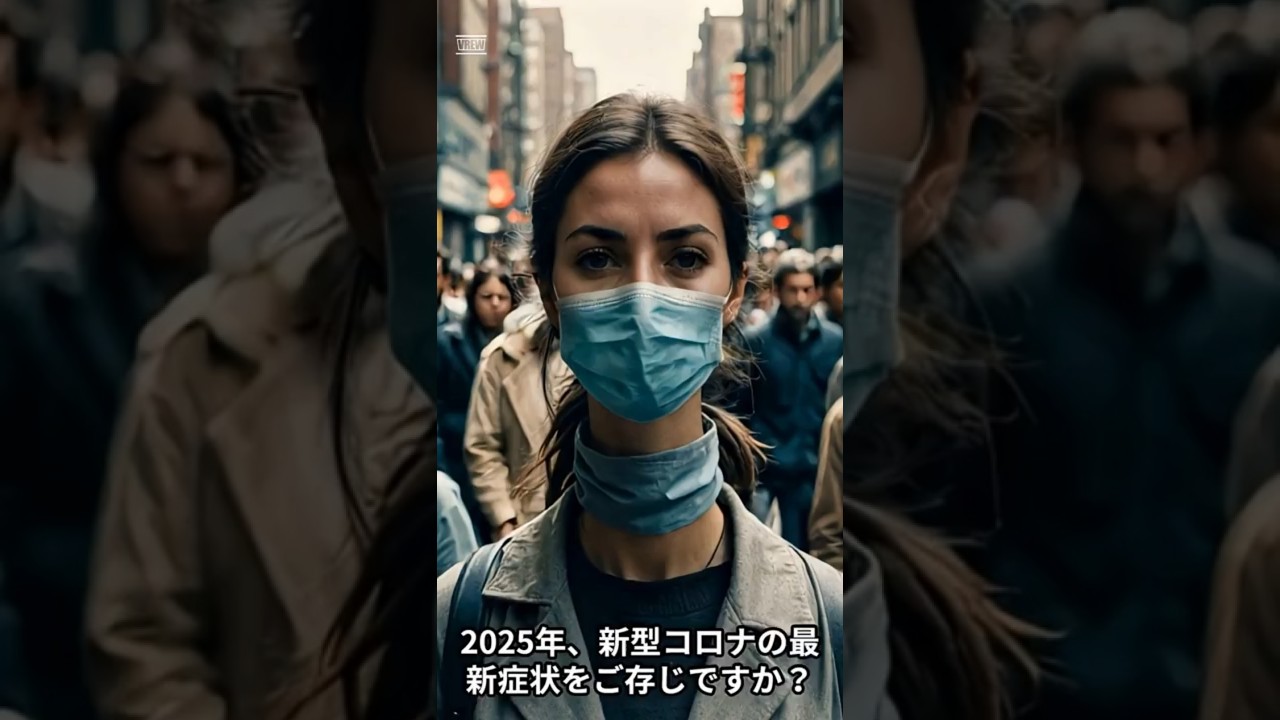 [音楽] 2025年新型コロナの最新症状をご存知 ですか?現在流行している変異株は感染力 が強いけれど重症化は少なめとされてい ます。主な症状は強いの痛み発熱37° から39° 咳や鼻水などの蒸気同症状上検態感や頭痛 稀れにデりや手未覚や嗅覚の異常は依前 ほど多くはありません。特徴は鋭い喉度の 痛みとだるさ。ただの風と思って放置する と危険です。引き殺しさや胸の圧迫感が ある場合はすごい領期間へマスク、換気、 ワクチンで予防。体調がおかしいと感じ たら早めに受信しましょう。とにかく予防 が大切です。