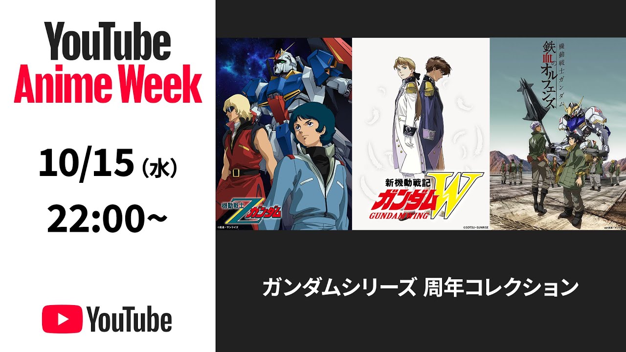 【10/15 (水) 22:00~ 】ガンダムシリーズ 周年コレクション【ガンチャン】#YouTubeAnimeWeek