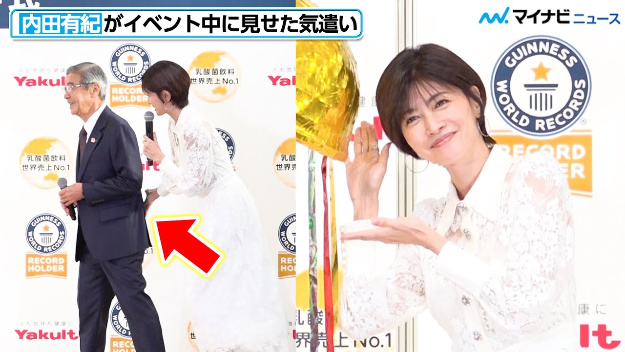 俳優の内田有紀が14日、都内で行われた「ヤクルト ギネス世界記録 TM 認定授与式」 に登場した。