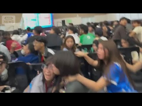 天井のパネルが次々と落下し、は物が散乱しています。日本時間昨日午前フィリピン南部の棚置きでマグニチュード 7.4 の地震が発生しました。ロイター通信によりますと、これまでに少なくとも [拍手] 7人が死亡したということです。 民田直大沖きでは夜にもマグニチュード 6.7 の地震が発生し、沿岸部に津波警報が出されました。 の人後出てくれるよ。 [音楽] [拍手]
