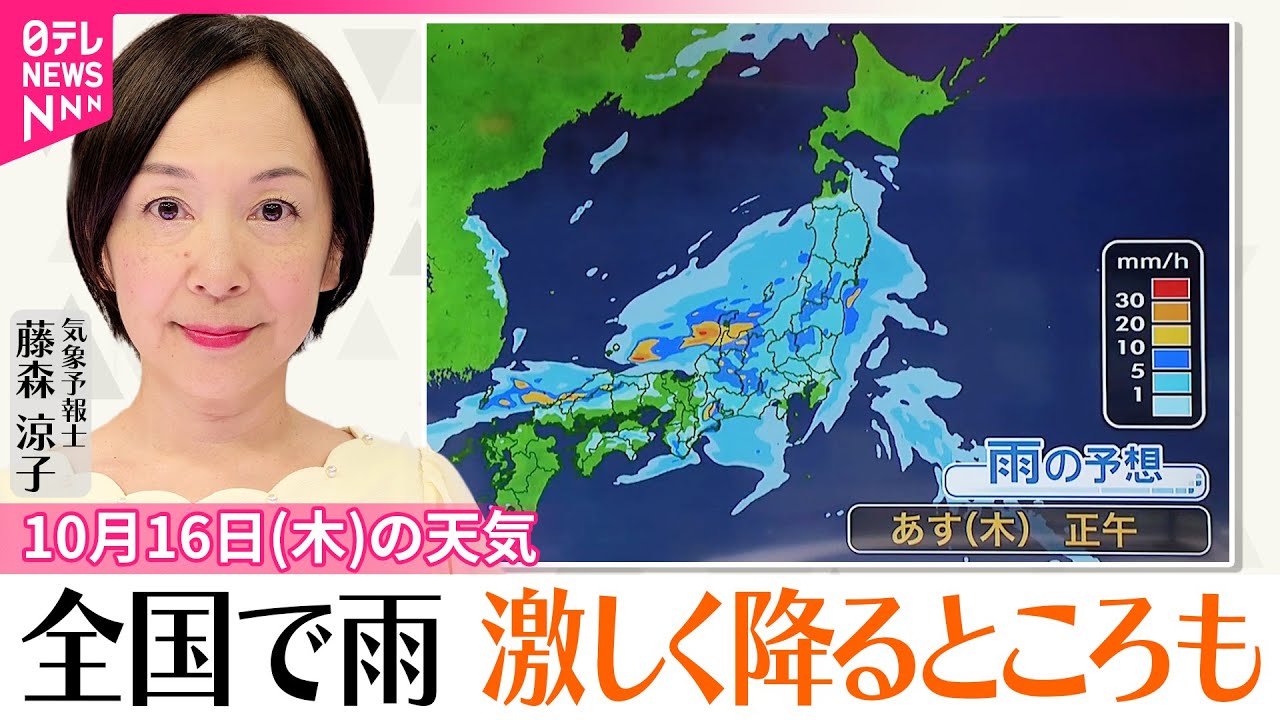 【16日の天気】全国的に雨 日本海側中心に激しく降るところも