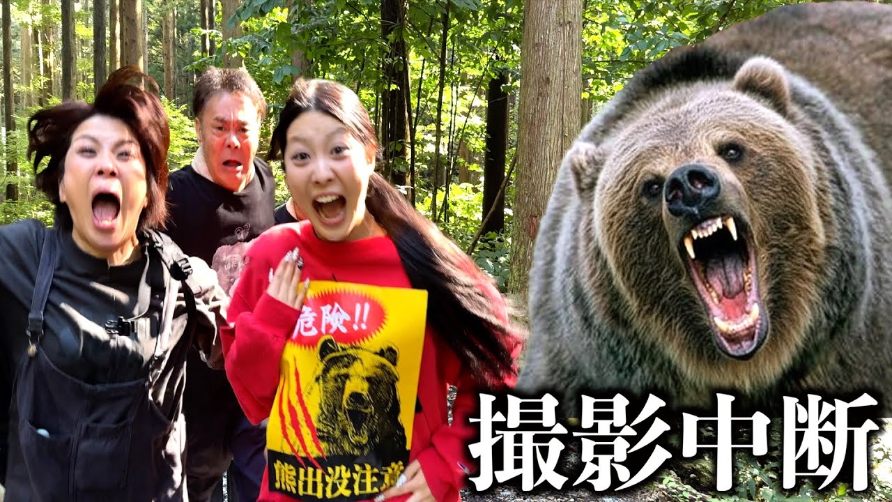撮影中にクマに遭遇しました。家族が熊出没する山で襲われる映像…24時間生活