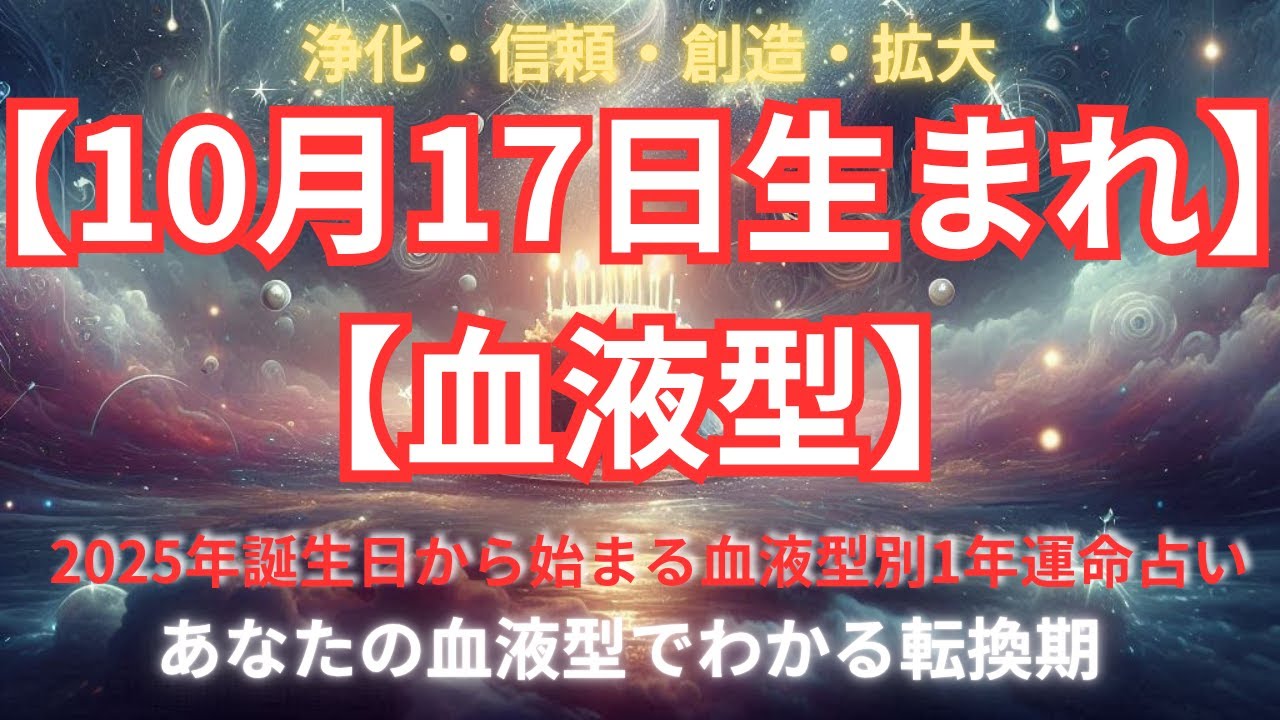 【10/17日生まれ】+A型・B型・O型・AB型|2025年誕生日から始まる血液型別1年運命占い
