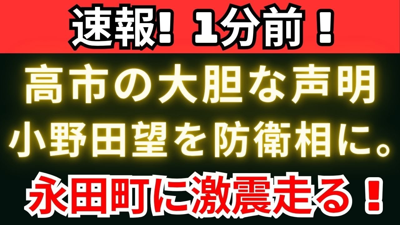 【緊急報道】高市が電撃決断!小野田望を防衛相に抜擢、永田町が騒然!