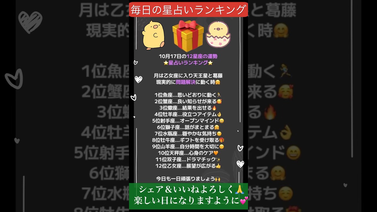 10月17日の星占いランキング&タロット占い🔮 #shorts #星占い #ランキング #タロット占い #毎日投稿