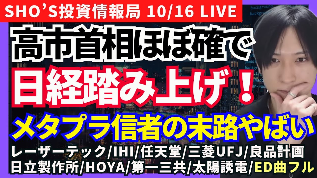 【高市首相ほぼ確で日経平均先物上昇!メタプラ信者の末路が今後もヤバい!】レーザーテック/IHI/任天堂/三菱UFJ/良品計画/日立製作所/HOYA/メタプラネット/第一三共/太陽誘電