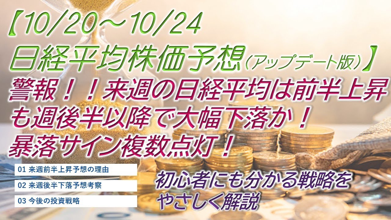 【10/20~10/24日経平均株価予想(アップデート版)】警報!!来週の日経平均は前半上昇も週後半以降で大幅下落か!暴落サイン複数点灯!#日経平均#株価予想#デイトレ