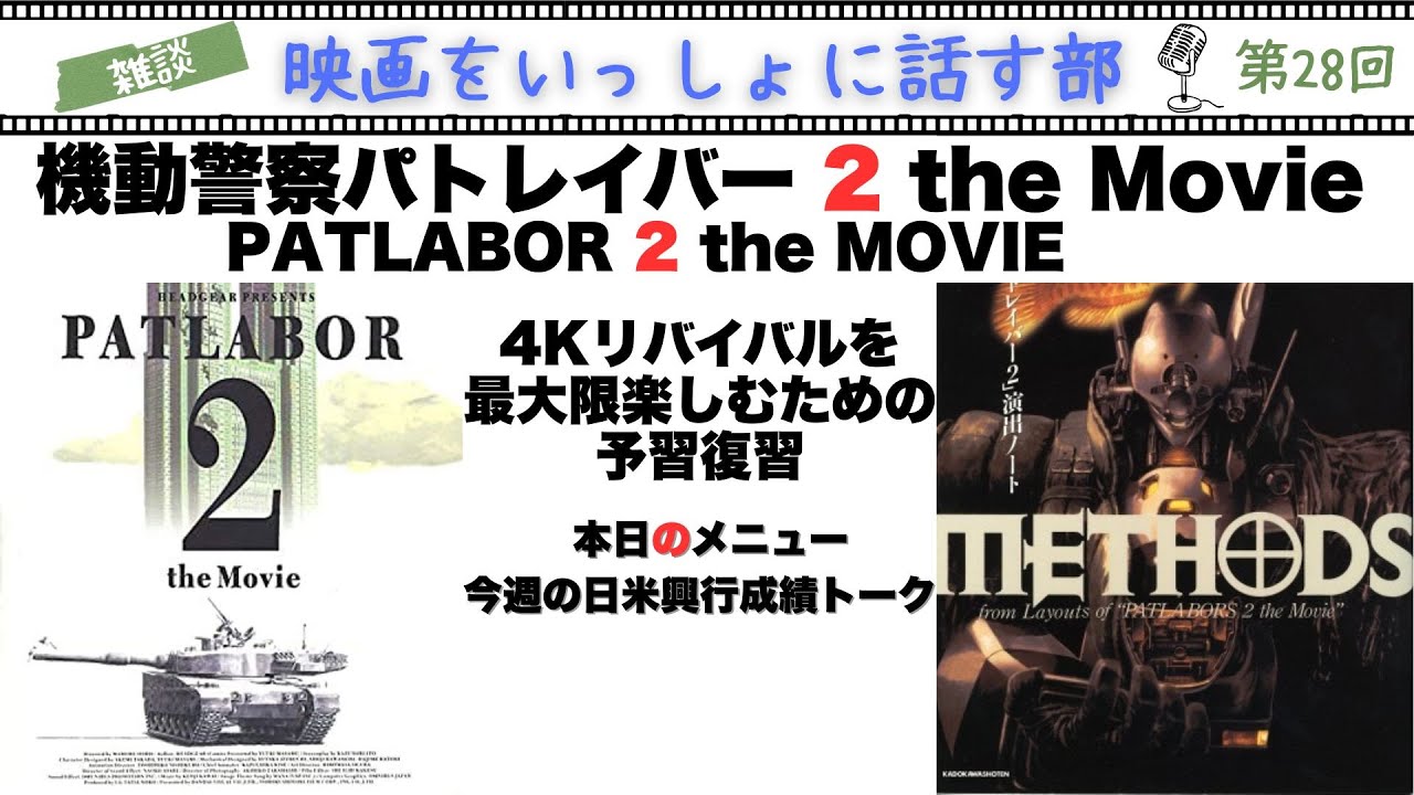 今回の【映画をいっしょに話す部】は、前作に引き続き待望の4Kリバイバル『機動警察パトレイバー 2 the MOVIE』に備えて、あれこれと当時の思い出や今作の凄さについてあれこれ前もってお話したいと思います。久々の【映画をいっしょに読む部】も復活!