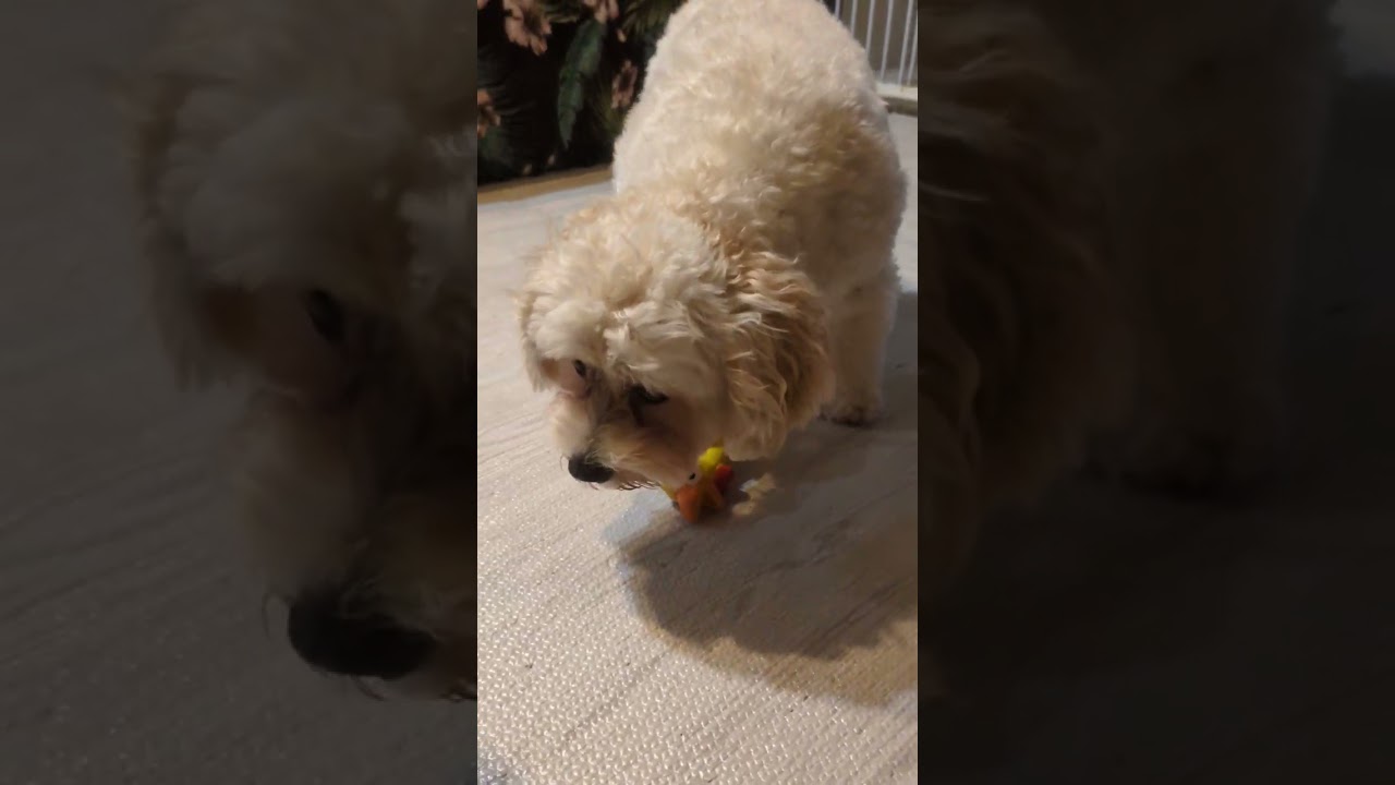 新しいおもちゃ❤(ӦvӦ。) 🐓#トイプードル #マルプー#dog #family #可愛い #犬のいる生活 #おもしろ #shorts #japan