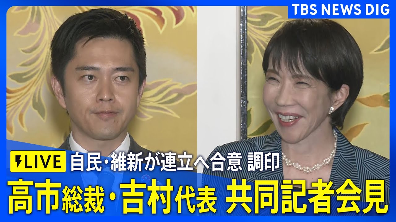 【LIVE】自民・維新が連立へ 合意文書に調印 日本維新の会・吉村洋文代表 共同記者会見(2025年10月20日)| TBS NEWS DIG