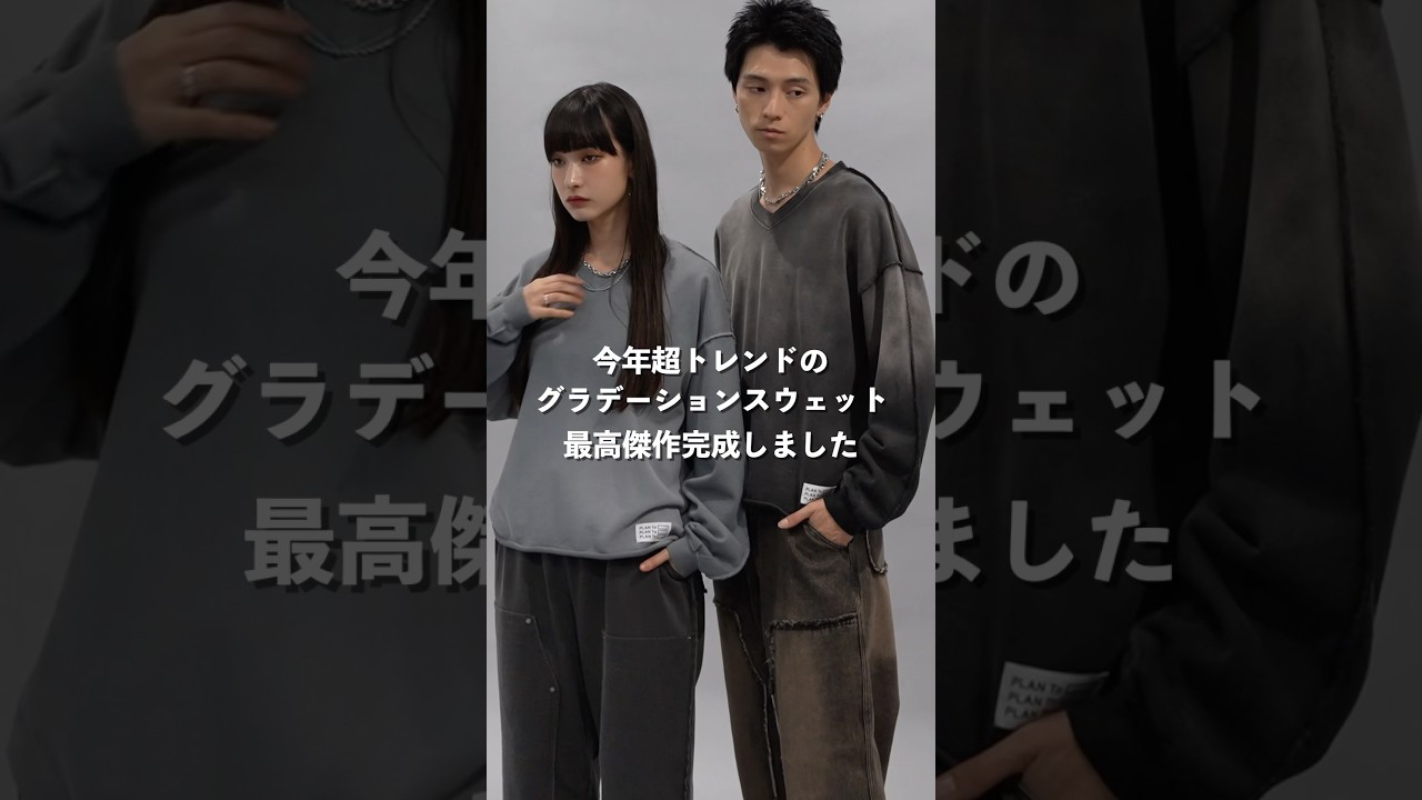 今年超トレンドのグラデーションスエット 対抗傑作が完成しました。正直他の ブランドたちと比べるとちょっと高い。で も素材ほどこだわってどこにも負けない 最高の一着を作りました。1番長く使える 絶妙な肉厚さのコットン裏素材に リンテージスプレー加工で美しい グラデーションを描きました。こんな ビンテージ感のある素材にマッチする インサイドアウト。この肩のライン めちゃくちゃかっこよくない?そして トレンド感を爆発させるタだけシルエット 。ただ短くするんじゃなくてあえてリブを なくしたカットオフデザイン。これが ビンテージスエットにばっちりはまるの。 首元はじわじわトレンドになってきている 。Vネック存在感あるネックレスやシャツ との相性が抜群にいい。さらに首元の横幅 をや広めに設計しているから首が長く見え て小顔効果も抜群。あんだけシルエットと 合わせて上からも下からもスタイルアップ できちゃう。ここまで上げてきたポイント たち1癖あるんだけど気回し力は損わない 。1枚で様になるのはもちろんインナー 使いとしても重宝するし幅広いシーズン 幅広いコーデに活躍してくれます。 とにかく使いやすいブラックとグレーの 2色展開。