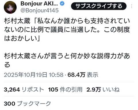 1:アリエル(東京都) [PL]:2025/10/19(日) 19:11:12.13 ID:M0E8xOcb0 BE:662593167-2BP(2000)