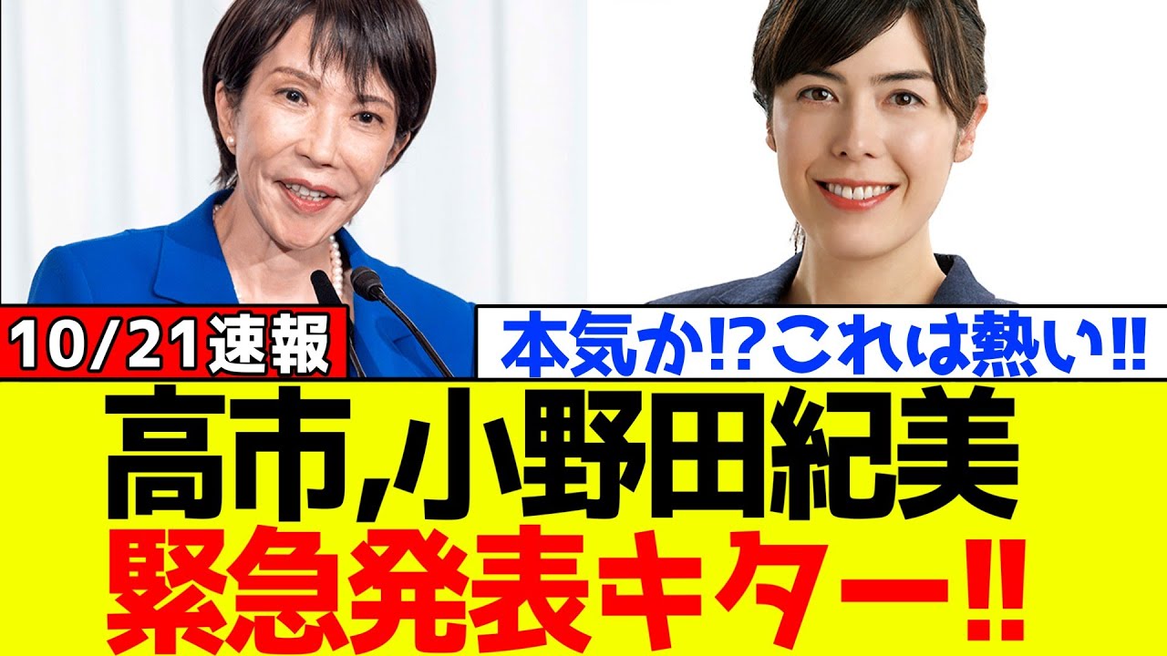 高一小野崎に緊急発表。高一氏は財務省に 片山さ市を起用する移行を固めるなど 新内閣の顔ぶれが次々と明らかになりつつ あるが女性は2人にとまる見通しだ。片山 市と同じく高一市の推薦人を務めた小田に 参院議員を経済安全保障省として起用し、 外国人政策担当も権務させる方針で固まっ た。一方、高一氏と総裁の座を争った小泉 新次郎氏を防衛省に、モ木俊光市を外償に 、林吉正市を総務省にそれぞれ起用する。 小野田さん、いきなり閣僚で経済安保大臣 ですか?今回はなっても副大臣あたりかと 思いましたが、これがもし本当なら通常 ならありえない抜擢です。これは高一さん のものすごい本気を感じますね。小野田が 外国人政策も憲務か面白いことになってき たな。これはすごい。元々の抱美さんには かなり期待していて、戦闘に立って活躍し て欲しいとずっと思っていました。 おそらくそう思ってらっしゃる方は多かっ たのではないでしょうか。高一さんは国民 の同行をきちんと察知して起用されたんだ と思います。高一さんにさすがと言いたい し、小野田さんも頑張ってめちゃくちゃ 期待してます。小野田さんの活躍期待して いるし、高一さんに指導してもらって時期 首相なんてことも期待している。治安が いいのが当たり前でみんな礼儀正しくて 思いやりで溢れていた日本が悪質な外国人 によって壊され始めている。どうかそれを 止めてほしい。記事への意見はコメント欄 へ。あなたの言葉が日本を変えます。ご 視聴ありがとうございました。